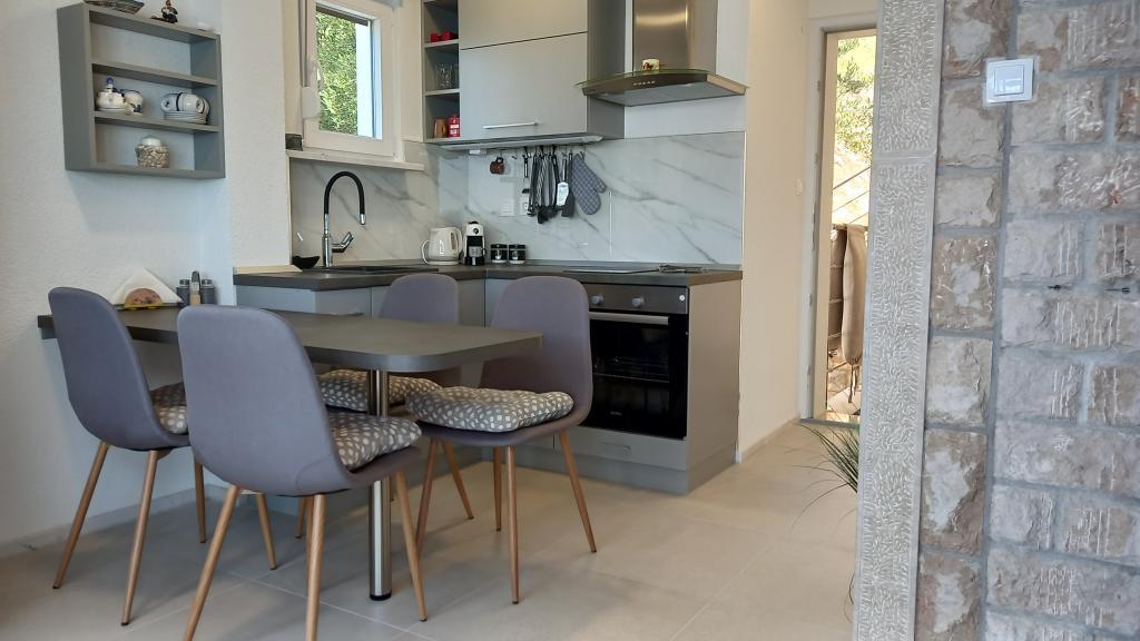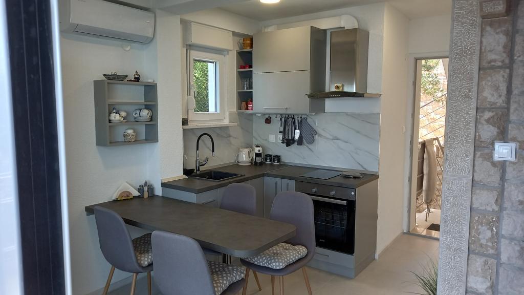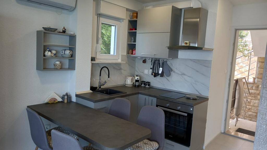 Schöner, ruhiger Ort. Wohnung komplett ausgestattet, nur Waschmaschine fehlt. Ansonsten alles was man sich wünschen kann. Toaster, Kaffeemaschine, Presse, reichlich Geschirr, Schalen, Gläser und Töpfe und Pfannen für das tägliche Kochen. Handtücher, Tücher und Papier, Taschen im Korb nur ein Traum. Großer Kühlschrank mit Gefrierfach. Klimaanlage. Der Zugang zum Grill ist jederzeit nach Absprache mit dem Eigentümer möglich. Immer Holz für den ganzen Grill vorbereitet. Besitzer hilfsbereit, nett, freundlich, Kommunikation perfekt cool, wer sprechen will. Von Frau Inhaber köstliche hausgemachte herzhafte Kekse (wir haben auch das Rezept übernommen) und süße Spezialität Bosenska. Wir empfehlen auch Wein aus dem Weingut der Familie Lončar, insbesondere Rotwein :-). Die Eigentümer planen, die Terrasse zu erweitern, was ein weiterer Bonus sein wird. Der Zugang zum Strand ist, wie bereits weiter unten beschrieben, wirklich halsbrecherisch, besonders wenn es heiß ist und Sie Dinge zum Strand tragen. Aber der Strand ist wunderschön, sauber, super schnorcheln, ins Wasser springen, Boote. Wir ließen alles über Nacht am Strand und nichts ging jemals verloren. Danke war die schönste Wohnung in den letzten 6 Jahren. Wir gehen jedes Jahr zu einem anderen Ort, aber wir werden auf jeden Fall wieder hierher kommen.