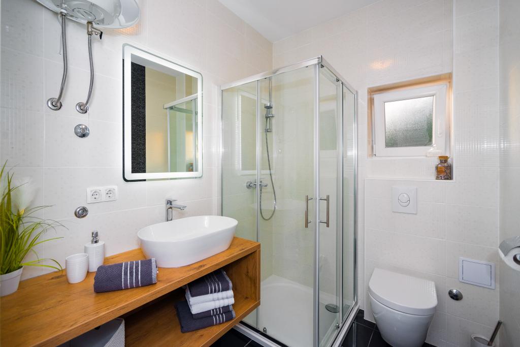 Ich habe noch nie eine Bewertung geschrieben, aber dieses Mal muss ich es tun. Wir waren für 5 Tage in dieser Villa und es ist wirklich eine tolle Erfahrung. Unterkunft auf hohem Niveau, ein Pool für Kinder, eine sonnige Terrasse, ein toller überdachter Sitzbereich im Freien einschließlich einer voll ausgestatteten Sommerküche mit Geschirrspüler und Kühlschrank. Alles ist absolut perfekt, die Innenausstattung entspricht einem wirklich hohen Standard. Die Eigentümerin ist hilfsbereit, wir kamen 5 Stunden vor der vereinbarten Zeit an und mussten der Eigentümerin nur eine SMS schicken, sie kam an und brachte uns ohne Komplikationen unter. Die Überraschung war, als sie etwa eine Stunde später zurückkam und Begrüßungsgetränke, Getränke für die Kinder, Obst, Gemüse und hausgemachten Käse einschließlich lokaler Wurst mitbrachte. Diese Unterkunft entspricht wirklich der Beschreibung in der Beschreibung. Für uns ein toller Urlaub, wir können sie wärmstens empfehlen. Wunderschöne Strände, wunderschönes sauberes Meer. Der Strand unter dem Haus ist 80 m lang und über Treppen erreichbar, aber im Rahmen der Fitnessverbesserung kein Problem. Das wunderschöne Meer und ein großartiges Erlebnis werden für alles entschädigt.