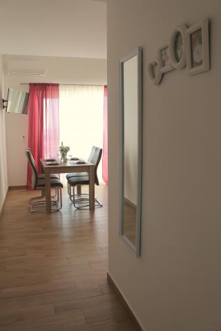 Moderne Wohnungen im Zentrum von Podaca an der Makarska Riviera. Ein schöner Kiesstrand ist 100 Meter vom Haus entfernt. Die Apartments sind ideal für Familien mit Kindern. Im Umkreis von 20 Metern gibt es eine Café, Geschäft, das Lebensmittelgeschäft, Spielplatz, Park und Wasserrutsche. Neben das Haus gibt es eine Straße zum alten Dorf, in dem man die Kirche aus dem Jahr 1963 besuchen. Ideal für Naturliebhaber. Aufgrund der guten Verkehrsanbindung können die Gäste auf Tagestouren gehen (Dubrovnik, Mostar, Makarska, Split, Medjugorje, die Mündung des Flusses Neretva, Baćina Lakes Peninsula ..) Jede Wohnung hat eine Fläche von 50 m2 und besteht aus folgenden Komponenten prosotrija: Wohnzimmer mit Küche und Esszimmer, Flur, Bad, Schlafzimmer mit zugehörigem WC und Balkon. Parkplatz ist eingezäunt und wird innerhalb des Gebäudes. Alle Wohnungen verfügen über Klimaanlage, TV / SAT (Wohnzimmer), Wi-Fi, Kaffeemaschine, Safe. .