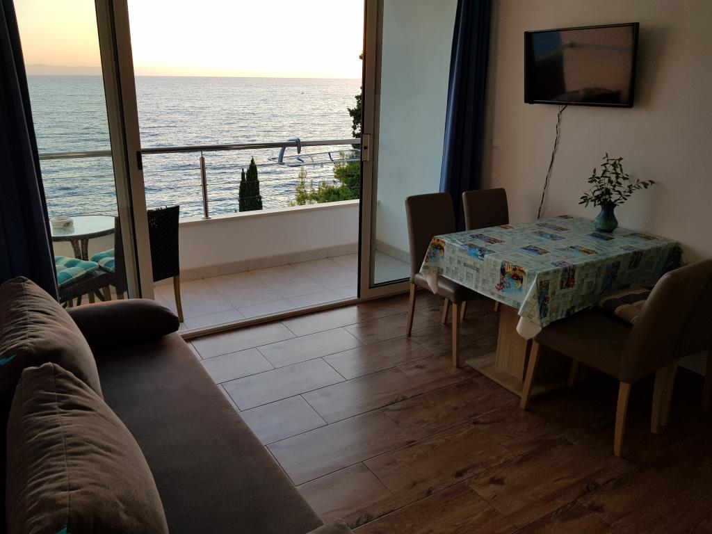 Ich empfehle diese Wohnung. Es ist komplett ausgestattet (einschließlich Bügeleisen, Trockner, Küchenzeile einsatzbereit), eine fabelhafte Aussicht vom Balkon, nahe am Strand, Geschäften, Bäckereien, Restaurants. Das Apartment verfügt über eine Treppe, die direkt zur Promenade führt. Gratis Wifi. In der Nähe von Makarska, Brela, Baska Voda. Die Gastgeber sind sehr nett und hilfsbereit. Ein idealer Ort für Familien mit Kindern! Ich empfehle