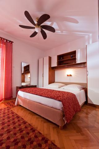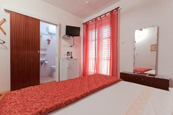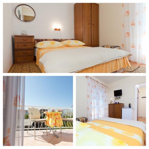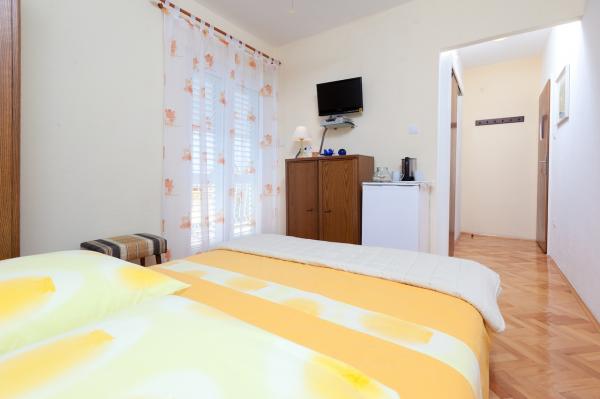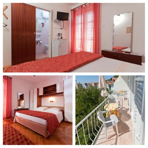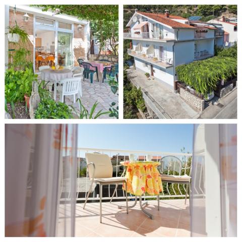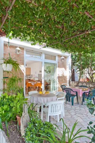 Zweistöckiges Familienhaus mit drei Doppelzimmern und zwei Studio-Apartments. Es befindet sich in der Gegend, in der sich der Yachthafen befindet. Das Meer ist nah und ein paar Minuten zu Fuß entfernt ist der beste Strand der Stadt. Zimmer ohne Klimaanlage verfügen über einen Deckenventilator.