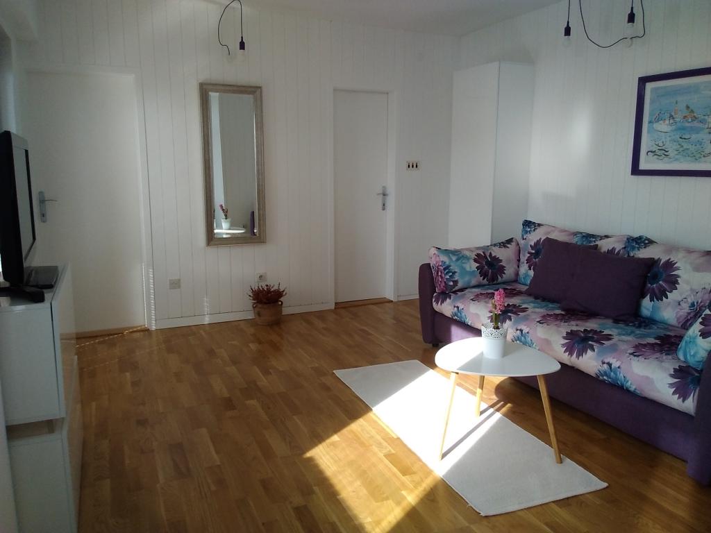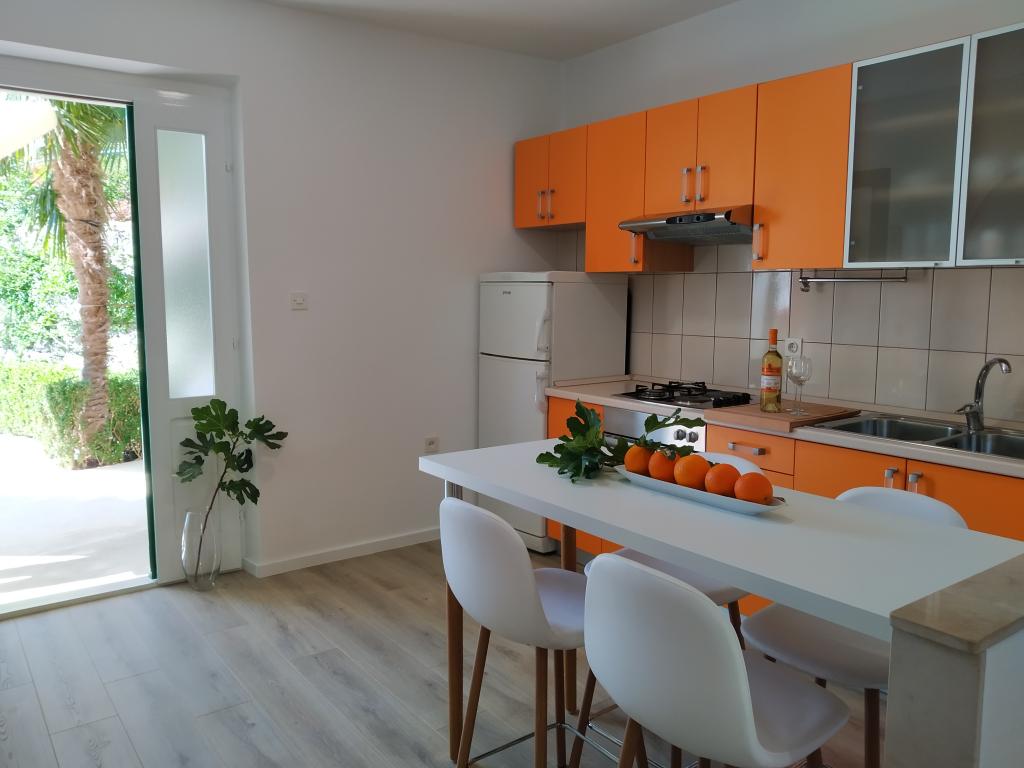 Komfortabel eingerichtete und voll ausgestattete Apartments in einem Familienhaus in einer ruhigen Gegend von Podgora; Nur 3 Gehminuten vom Stadtzentrum und dem Strand entfernt. Das Haus ist von einem Garten umgeben und jede Wohnung verfügt über eine große und schön eingerichtete Terrasse.