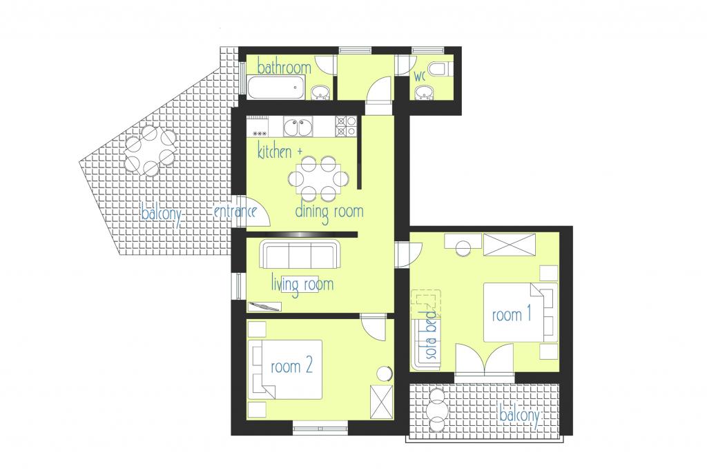 Ferienwohnung für zwei Personen mit zwei Zusatzbetten (50 m2)