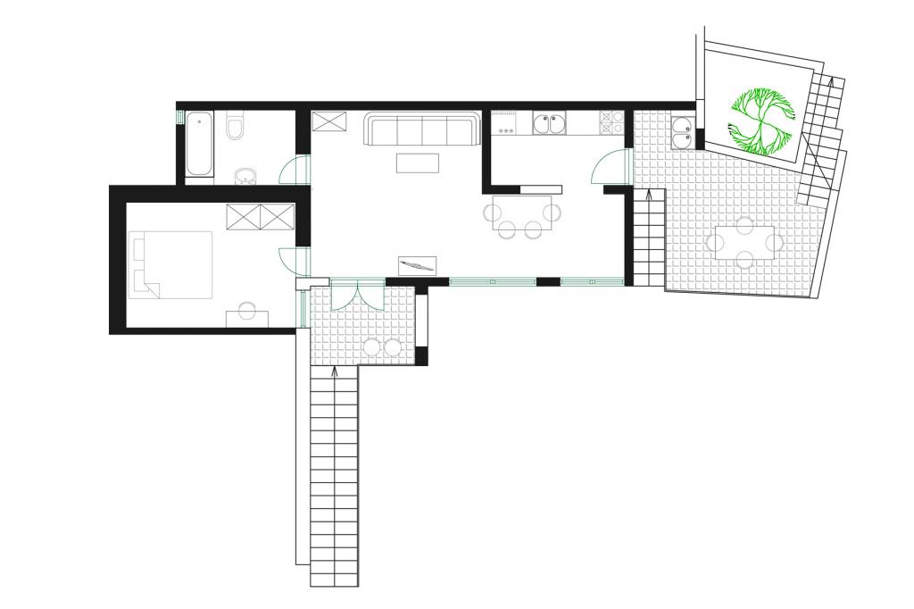 Ferienwohnung für zwei Personen mit zwei Zusatzbetten (34 m2)