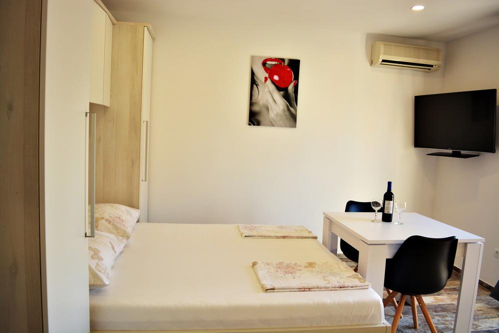 Wir durchquerten fast ganz Kroatien, bis wir in Podgora ankerten, das uns aufgrund seiner Lage und der Größe des Dorfes entgegenkam. Wir probierten sowohl Hotels als auch Privatunterkünfte aus, bis wir auf dieses Apartmenthaus in Jure stießen. Wir waren dieses Jahr zehnmal dort. Wir waren in 2+2, 2+1 und einem Studio für zwei Personen untergebracht, wo es die Möglichkeit eines Zustellbetts für ein Kind gibt. Die Apartments sind komplett ausgestattet, es hat uns an nichts gefehlt, sogar eine Waschmaschine ist vorhanden, was nicht überall Standard ist. Der Besitzer und seine Familie sind nett... sie beraten und helfen. Ich empfehle, es auszuprobieren