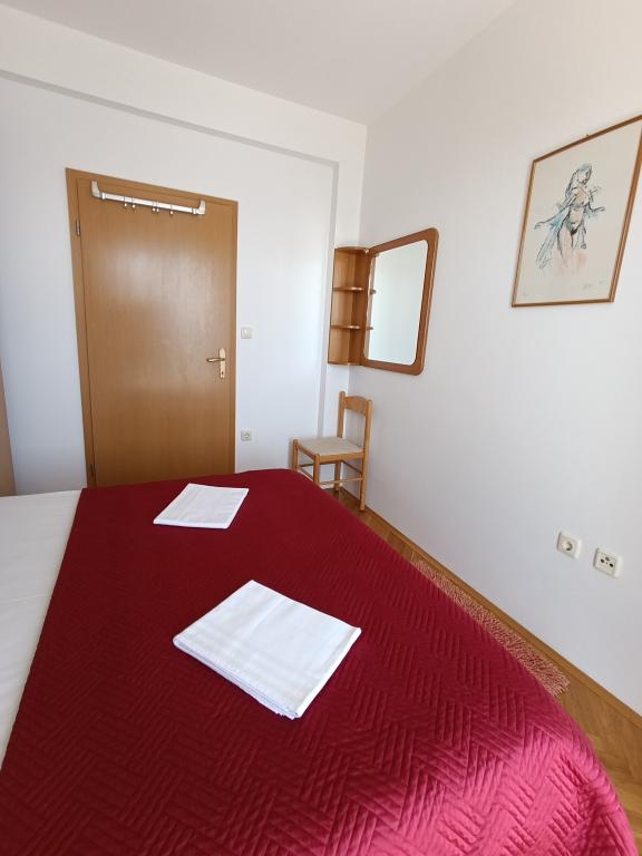 Apartments in erster Reihe zum Meer. Jedes Zimmer hat Meerblick. Der Strand befindet sich direkt vor dem Haus. Parkplätze (ein Platz pro Apartment) befinden sich vor dem Haus und sind im Preis inbegriffen. Zwei Restaurants und ein Geschäft in der Nähe. Die Anlage liegt in einem ruhigen Teil der Stadt, 15 Gehminuten vom Zentrum entfernt. Der FKK-Strand liegt außerhalb des Dorfes und ist 300 Meter entfernt.