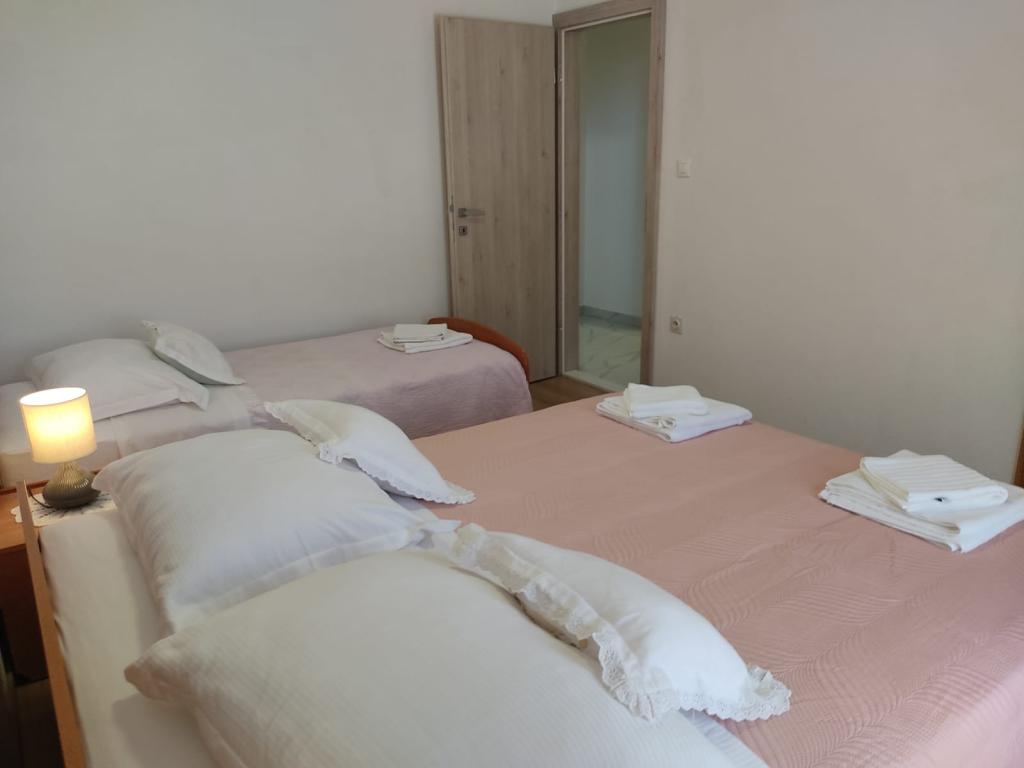 Bisher ist die beste Unterkunft in Kroatien. (Und das ist unser 10-mal) Ferienwohnung 8 + 1 - sehr geräumig, sauber, Klimaanlage (3xAC) zur Verfügung 2 Küchen, 2 Kühlschränke (was mit so vielen Menschen ist sehr nützlich) Küche ausgestattet mit allem, was Sie brauchen, 2 Badezimmer (Dusche, Badewanne), und am wichtigsten, fantastische Terrasse mit herrlichem Blick auf das Meer, die Berge, die Stadt. Obwohl Google Maps zeigt nicht den Weg zum Strand dann keine Sorge ... :) wahre landschaftlicher Weg zwischen den Olivenbäumen und den benachbarten Häusern (Abstieg dauerte 7 Minuten). Sehr geräumige Zimmer mit großen Betten und Schränke Dinge, mit Blick auf die beiden größten Terrasse, Balkon auf zwei in Richtung der Berge. Das Wichtigste - tolle Besitzer, sehr freundlich und hilfsbereit. Schon habe ich nicht so gastfreundlich und hilfsbereit Menschen getroffen, die auf jede Anregung, Anfrage, Anfrage. Empfohlene 100%