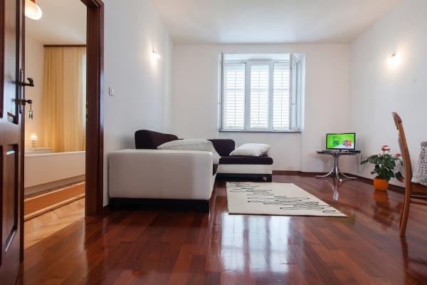 Voll ausgestattete und moderne Wohnung, die im Jahr 2012 komplett renoviert wurde. Es liegt in einer Villa aus Stein im Zentrum von Podgora entfernt. Die Villa ist von Meer und wunderschönen Kiesstrand befindet sich auf der Stufe der Villa (Entfernung 10 m) gelegen. Die Wohnung verfügt über eine herrliche Aussicht auf das Meer und die beiden zentralen Inseln Brac und Hvar. Apartment Name - Orange auf der Durchreise von der Umwelt rund um die Villa, und zwar um einen Garten mit jahrhundertealten Bäumen von Orangen, Zitronen, Granatäpfel, Mispeln und andere meditranskog Pflanzen. Der Garten befindet und sichere Parkplätze, die im Preis inbegriffen ist. Bitte beachten Sie, dass die Schritt Suiten sind alle sadržaiji Sport, Kultur und Unterhaltung, die Ihren Urlaub noch angenehmer zu machen.