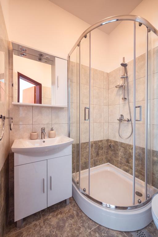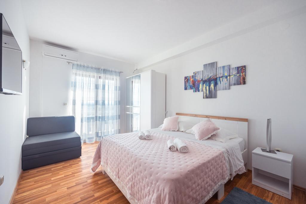 Voll ausgestattete Apartments Baki ist in einem ruhigen Ort Podstrana, nur 8 km von Split entfernt. Die Appartements sind mit LCD TV / SAT und Klimaanlage, die im Preis als auch lokale Steuern enthalten ist ausgestattet. Die Anlage befindet 30m vom Strand und dem Meer, weil die U-Bahnen nicht brauchen, um die Straße zu überqueren. Im Erdgeschoss gibt es einen Laden Ribola und ATM.