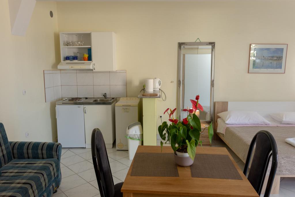 Kurtaxe ist im Preis inbegriffen.Ausgezeichnetes Studio-Apartment mit einer schönen Terrasse, auf der Sie bei herrlichem Blick auf das Meer Kaffee trinken können. Die Gastgeber sind sehr freundlich und zuvorkommend. Alle Empfehlungen zur Wohnung.