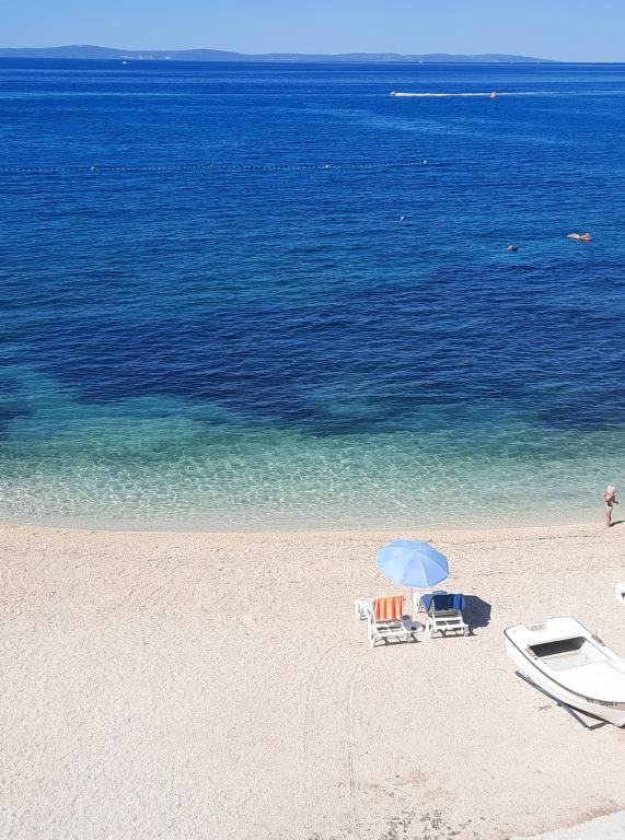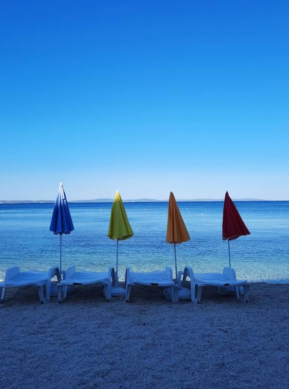 Das gemütliche und geräumige Haus liegt direkt am Strand, 10 m vom Meer entfernt. Den Gästen stehen Liegestühle zur Verfügung. Ideale Lage für Familien mit Kindern. Parkplatz vorhanden.