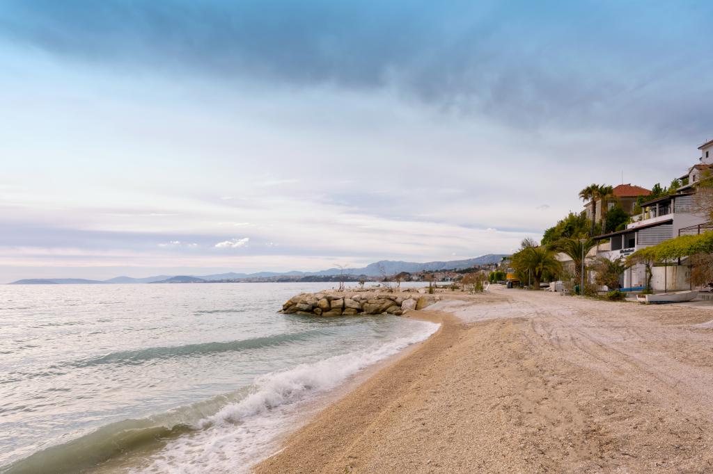 Apartments am Meer mit wunderschönem Blick auf den Sonnenuntergang und Stränden entlang der Küste für Sommerwanderungen. Die Wohnung befindet sich 5 Meter vom Meer entfernt und einen sicheren Parkplatz. Die Unterkunft befindet sich 20 Minuten vom Zentrum von Split entfernt. Krankenwagen, Apotheke, Kinderarzt, Zahnarzt und Feuerwehr sind in unmittelbarer Nähe. Touristeninformation ist 3 km entfernt.
