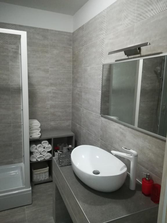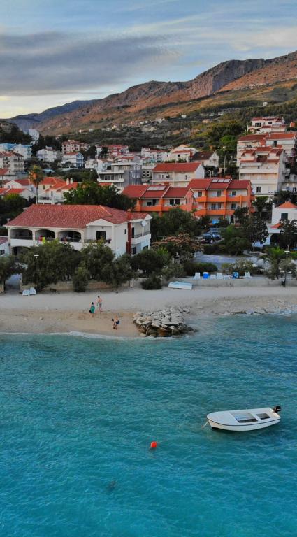 Komplett neue Apartments, 10 m vom Meer entfernt in einer ruhigen Umgebung. In der Nähe befindet sich ein Markt, ein Café, eine Bäckerei und eine Apotheke. Die Apartments befinden sich 12 km von Split und 13 km von den Omis Apartments entfernt. Sie verfügen über große Terrassen.