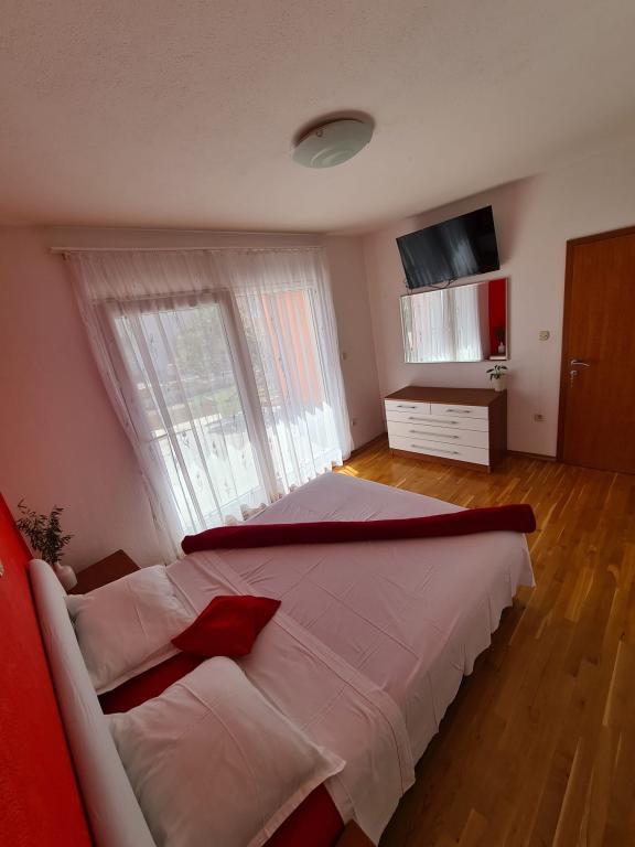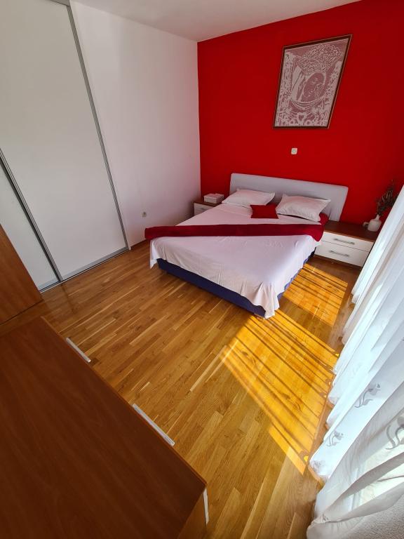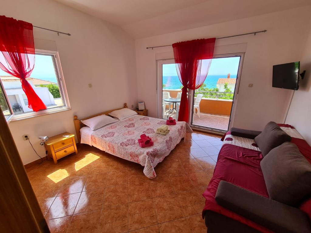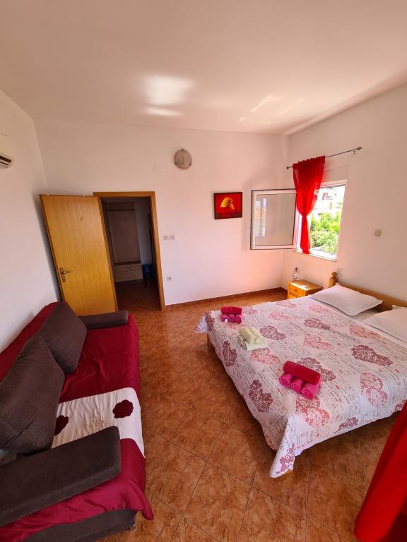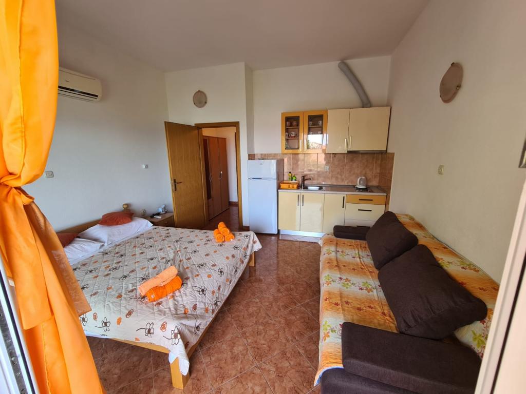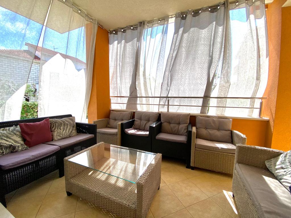 Kurtaxe ist im Preis inbegriffen.Der Preis der Wohnung beinhaltet auch einen Liegestuhl, der mit einem Sonnenschirm ausgestattet ist, um an heißen Sommernachmittagen und -morgen einen besseren Schutz vor der Sonne zu gewährleisten. Das Parken ist ebenfalls im Preis inbegriffen und befindet sich direkt neben der Wohnung. Bei einer Reservierung von 7 Tagen und mehr servieren wir unseren Gästen Fisch, der von unserem eigenen Boot gefangen wurde, und Pfirsiche, die auf unserem eigenen Feld gepflückt wurden. Wir verkaufen auch hausgemachten Glühwein und Brandy zu einem niedrigen Preis. Wir bieten auch hausgemachtes Olivenöl an und verkaufen es auch in größeren Mengen.