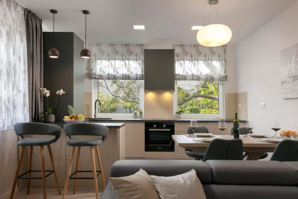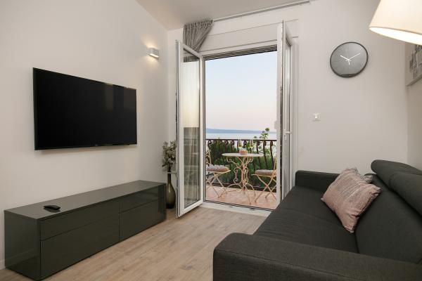 Voll ausgestattete und moderne Wohnung im Dorf 10 km von Split entfernt. Die Anlage in einer Entfernung von 30 m vom Meer entfernt und in seiner Nähe befindet sind alle notwendigen Annehmlichkeiten und Attraktionen für ein angenehmes und schönes Zimmer. Die Wohnung ist komfortabel und voll ausgestattet, hat auch eine schöne Aussicht auf das Meer und die Inseln.