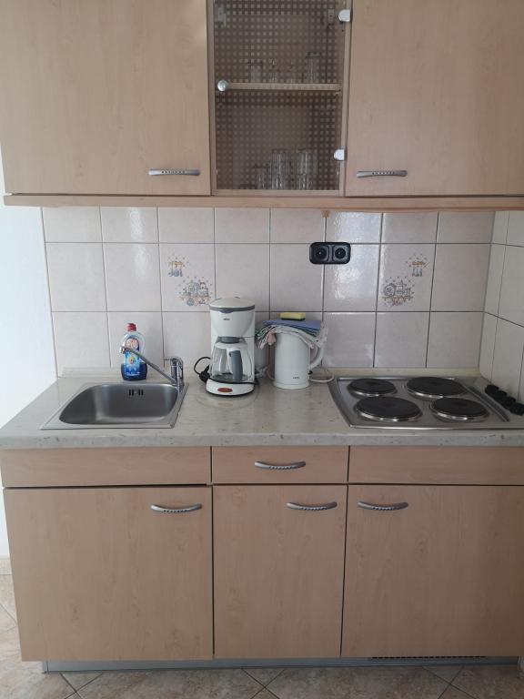 Apartments in einem Privathaus in der Nähe des Meeres und des Zentrums. Die Wohnungen befinden sich im Erdgeschoss. Die Wohnungen sind komplett und modern ausgestattet. Die Anlage befindet sich fünf Gehminuten vom Strand entfernt. Die Wohnung verfügt über eine große Terrasse mit Grill. Parken für Autos ist in einem umzäunten Hof.