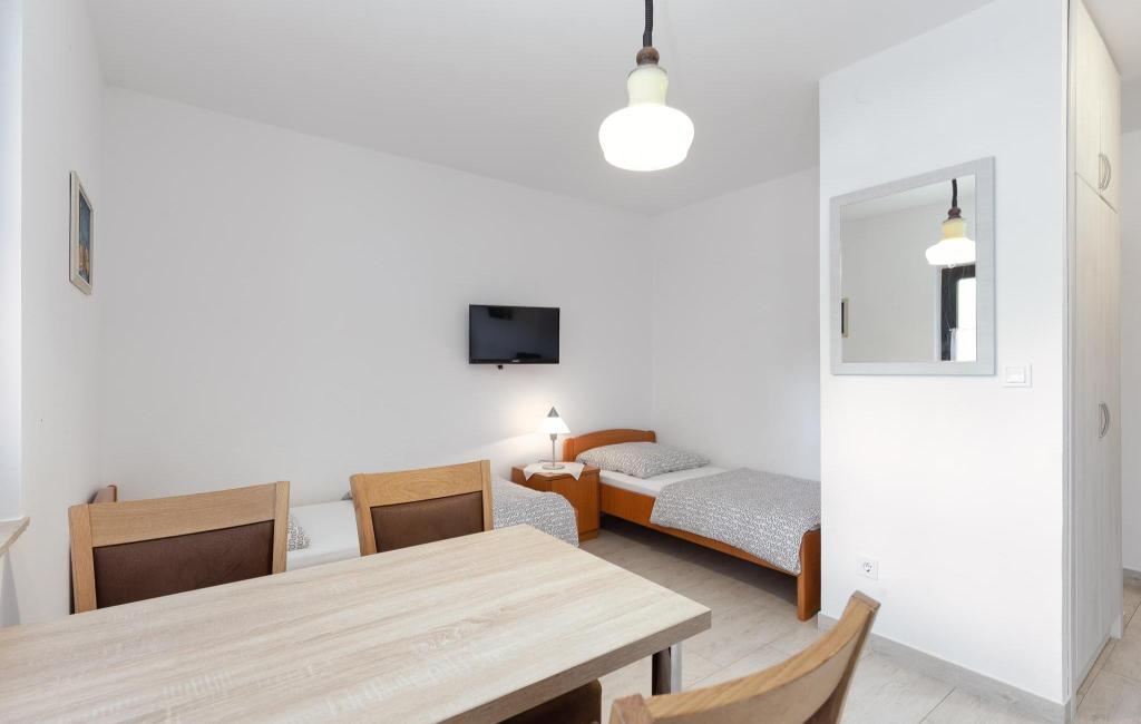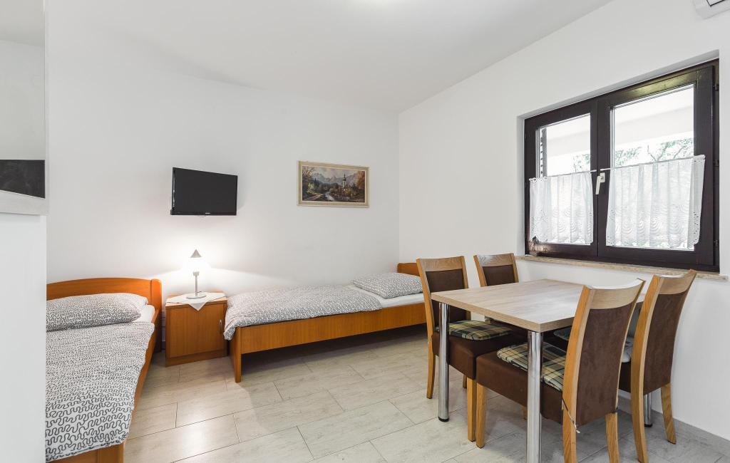 Das Haus Mirko befindet sich in der kleinen Stadt Mali Maj am Stadtrand von Porec. 3000 m von der Altstadt entfernt. In Mali Maj können Sie das Restaurant, die Café-Bar, die Konditorei, die Bäckerei, den Markt und die Wechselstube besuchen. Das Mirko House liegt 600 m vom Strand entfernt und bietet eine Vielzahl von Aktivitäten (Sport, Restaurants). Das Haus ist mit einem Zaun und einer Hoftür eingezäunt. Im Garten gibt es einen gemeinsamen Grillplatz mit Sitzmöbeln. Im Haus befinden sich fünf Wohnungen A3 1.