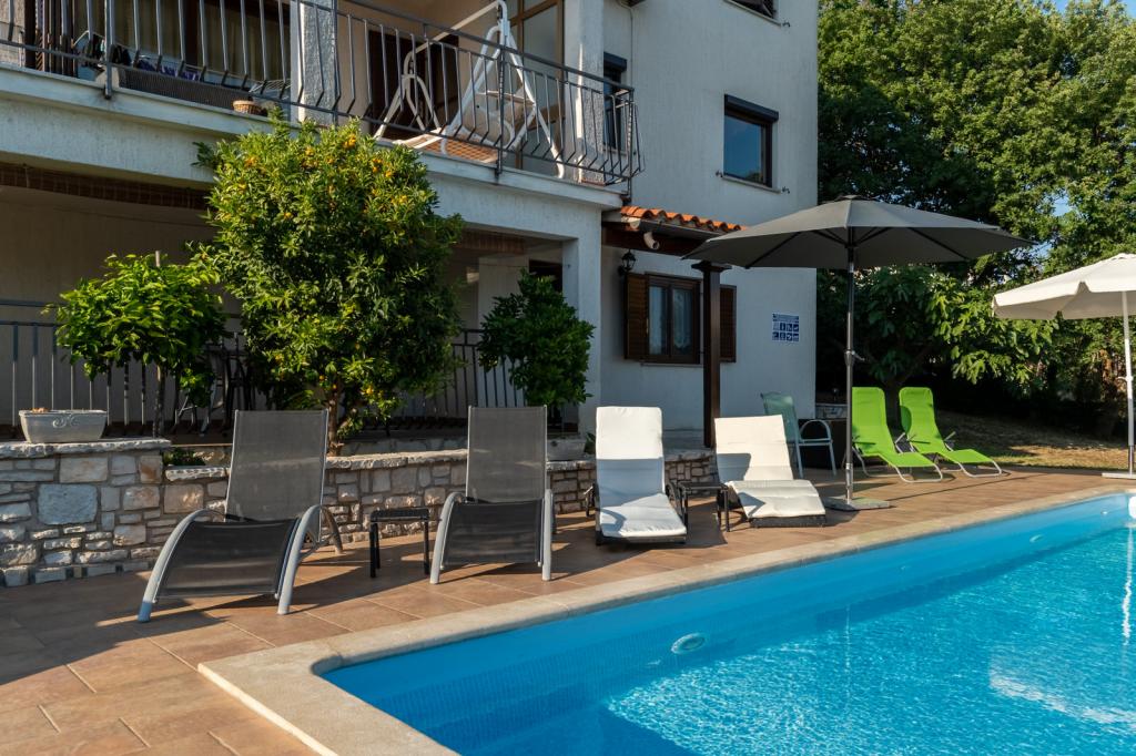 Willkommen in den Apartments Villa Verde. Wir befinden uns in einem ruhigen Dorf, 10 Autominuten vom Zentrum von Porec entfernt. Genießen Sie die frische Luft und das Zwitschern der Vögel, während Sie im 32 m² großen Pool entspannen, der von jahrhundertealten Eichen auf einem isolierten 3500 m² großen Grundstück umgeben ist. Die Apartments sind komplett ausgestattet für einen erholsamen Aufenthalt in einer natürlichen Umgebung. Die Apartments in der Villa Verde sind nur für Erwachsene gedacht. Wir bieten Ihnen die Möglichkeit, den Grill mit all seinen Geräten zu nutzen (ich kann Ihnen mit unserem hausgemachten Holz und dem einheimischen istrischen Wein und Dessert helfen). Wir bieten unseren lieben Gästen hausgemachte Eier unseres Popcorns an, die unsere Gäste gerne füttern und sie Belohnen Sie sie mit hausgemachten Eiern. Ich hoffe, Sie entscheiden sich für einen Aufenthalt in unseren Apartments und genießen die entspannte Atmosphäre eines typisch istrischen Dorfes.