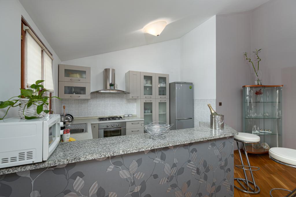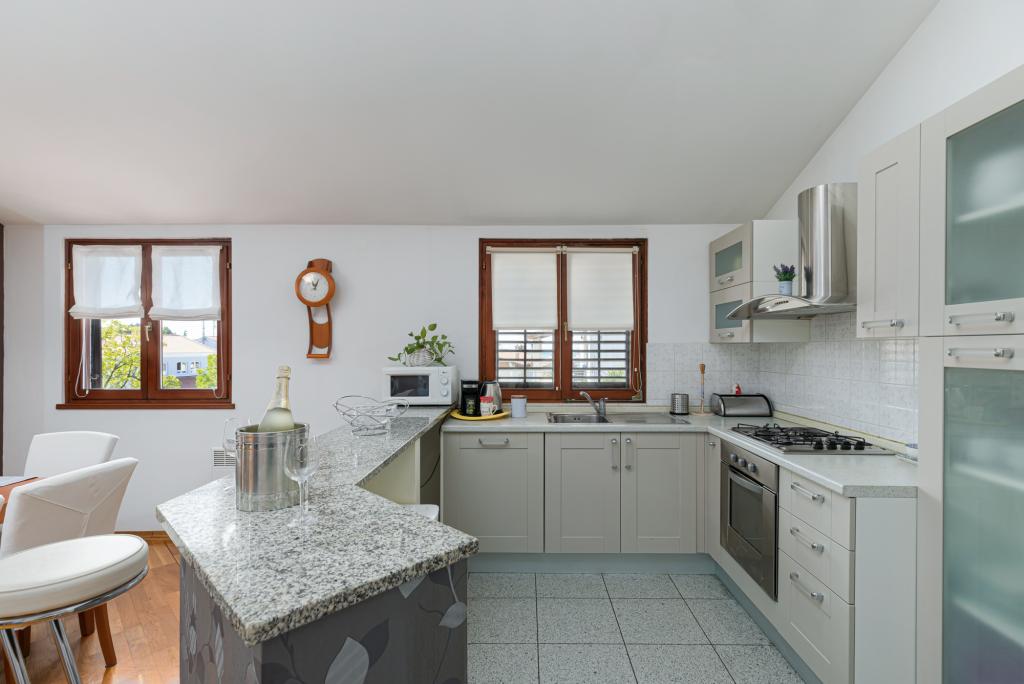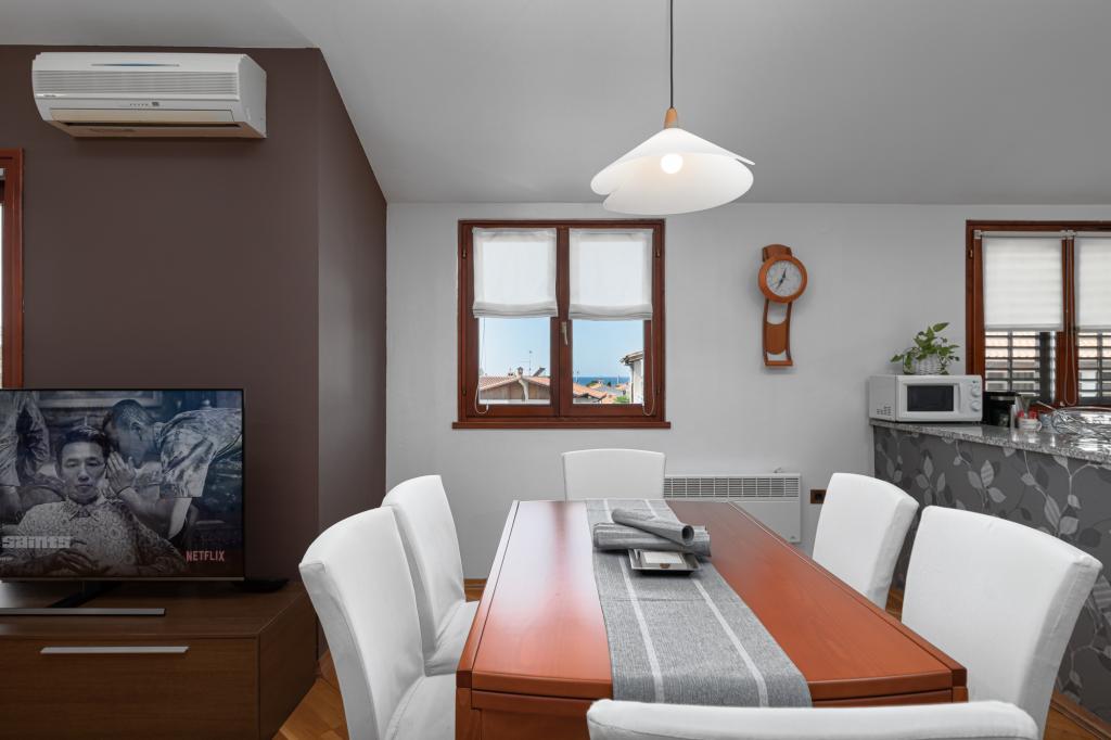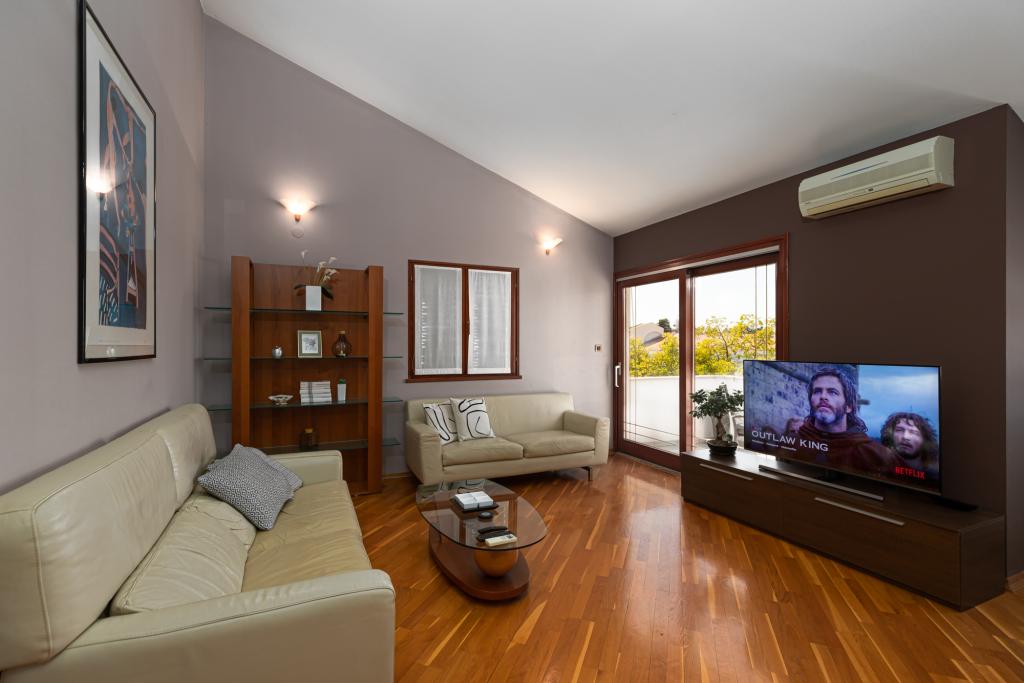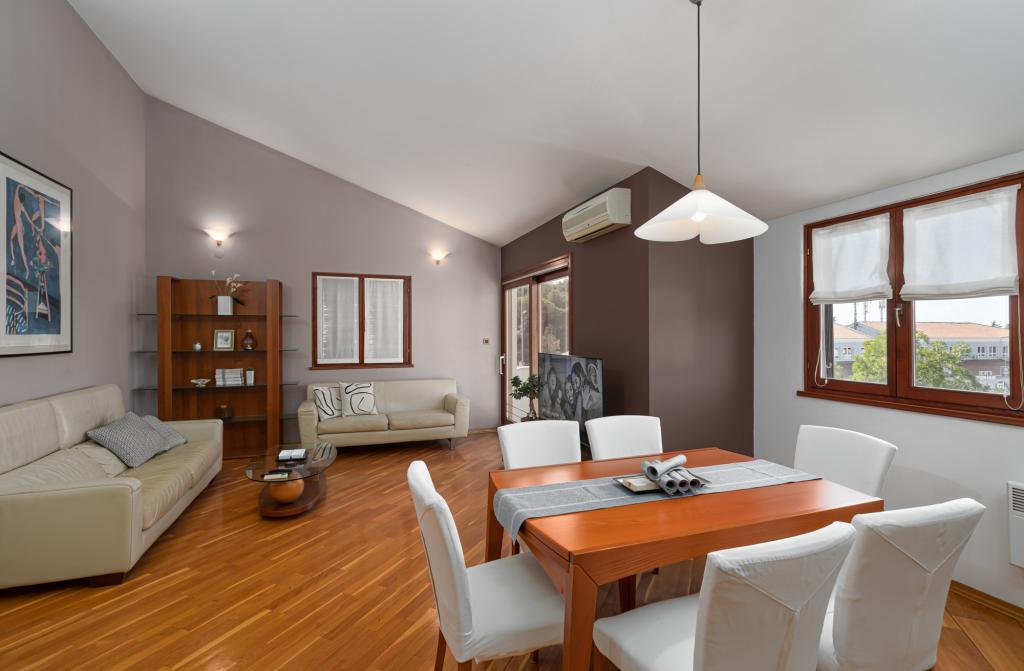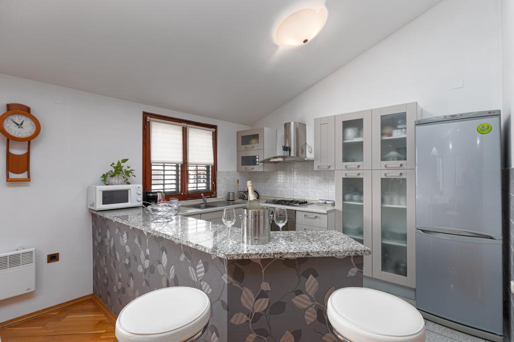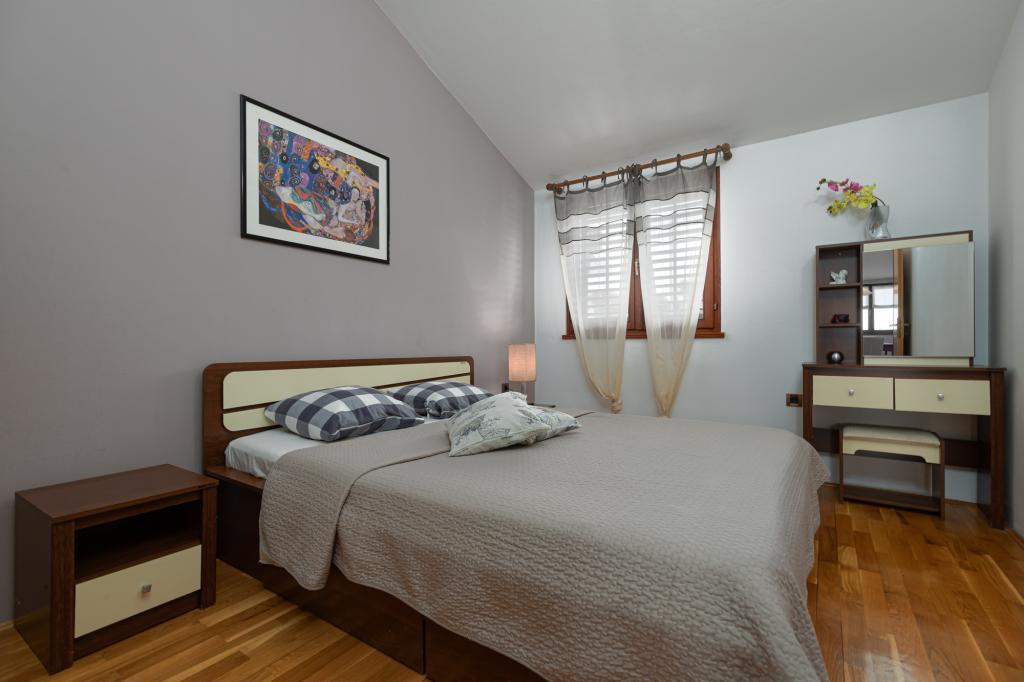 Das Haus Biba befindet sich im Zentrum von Poreč. Es ist 400 m von der Altstadt entfernt. Der nächste Strand für Schwimmer mit Sport und interessanten Aktivitäten ist 500 m entfernt. Vor dem Haus im Hof gibt es einen Parkplatz. Das Haus besteht aus zwei schön eingerichteten Zimmern und einem geräumigen Wohnzimmer sowie einem Balkon mit Meerblick. In der Nähe gibt es eine Bäckerei, einen Supermarkt, einen Fahrradverleih, Cafés und Restaurants.