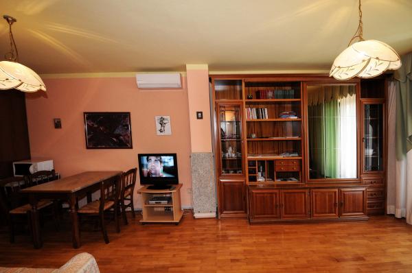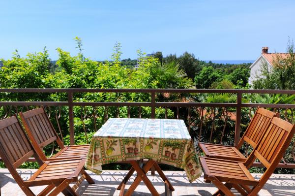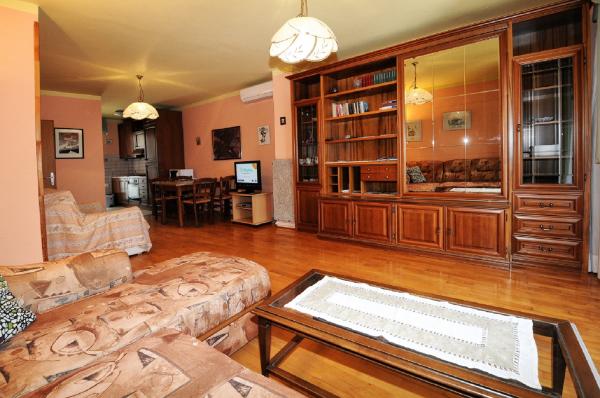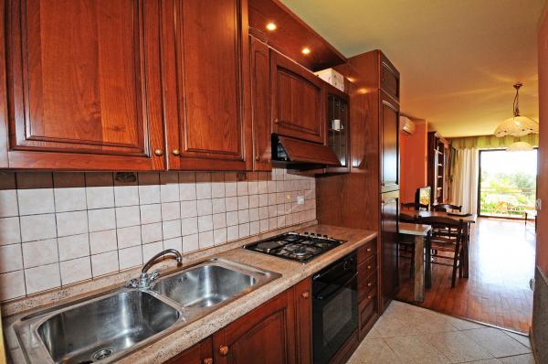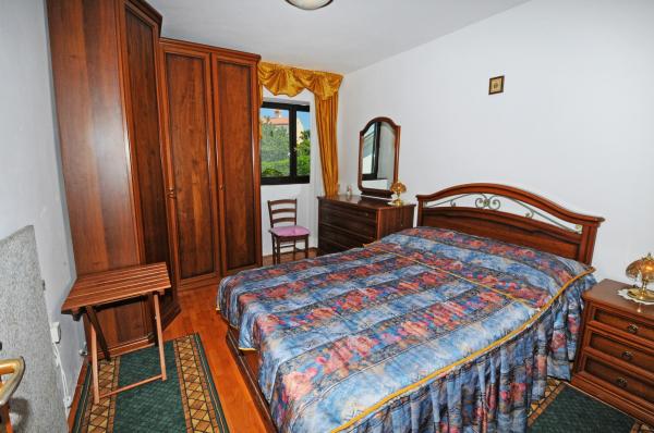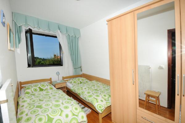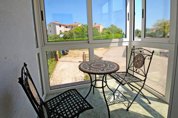 Die Wohnung liegt im ersten Stock eines Gebäudes, umgeben von viel Grün in einer ruhigen Elite Teil von Porec, vor dem Sportzentrum Hotel Diamant befindet. Die gemütlich eingerichtete Wohnung besteht aus einem geräumigen Wohnzimmer, größere und kleinere Schlafzimmer, Terrasse, geschlossener Balkon, Küche, Bad mit Dusche und WC und einen Flur. Vom Wohnzimmer, Terrasse und kleinere Schlafzimmer hat einen schönen Blick auf das Meer. Der Rest der Apartments mit Blick auf ihre eigene wunderschön angelegten Garten mit Obstbäumen und Blumen im Garten ist eine eigene bewegliche Zaun geschützten Parkplatz für ein Auto. Es dauert nur zehn Minuten zu Fuß durch den Schatten der Pinien, die den Blauen Flagge ausgezeichneten Stränden zu bekommen. Es ist auch ein Zentrum für Wassersport (Fallschirm, Banane, Rohre, etc.). In einer Entfernung von nur 2 km von den Apartments vor kurzem ein großer Wasserpark Aquacolors Porec.
