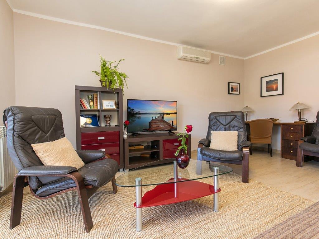 Wir befinden uns in einer ruhigen Gegend in unmittelbarer Nähe der Stadt. Die Wohnung verfügt über 3 Schlafzimmer mit Doppelbetten, Küche, Esszimmer, Flur, sowie 3 Badezimmer mit Dusche, WC und Bidet. Die Wohnung hat alles, was Sie brauchen, um Ihren Urlaub zu einem echten Urlaub zu machen. Sämtliche Bettwäsche ist ebenso vorhanden wie komplettes Ess- und Trinkgeschirr, Kühlschrank, Kaffeemaschine, Elektroherd, Mikrowelle, Fernseher mit Satellitenempfang und Sie haben auch kostenlosen Internetzugang mit unbegrenzter Nutzung. Vor der Wohnung gibt es eine große Terrasse mit Tisch und Stühlen und Liegestühlen. Hinter der Wohnung ist ein wahres Paradies, im Schatten haben Sie einen großen Tisch und können den Grill benutzen, während die Kinder frei auf dem grünen Rasen spielen können. Es gibt einen privaten kostenlosen Parkplatz vor dem Haus. In der Nähe, 50 m von der Wohnung entfernt, haben Sie einen großen Supermarkt, Restaurants, Kliniken, und Sie haben 400 m zum Zentrum sowie zum ersten Strand. Natürlich braucht man kein Auto, denn man ist zu Fuß in 7-8 Minuten dort.