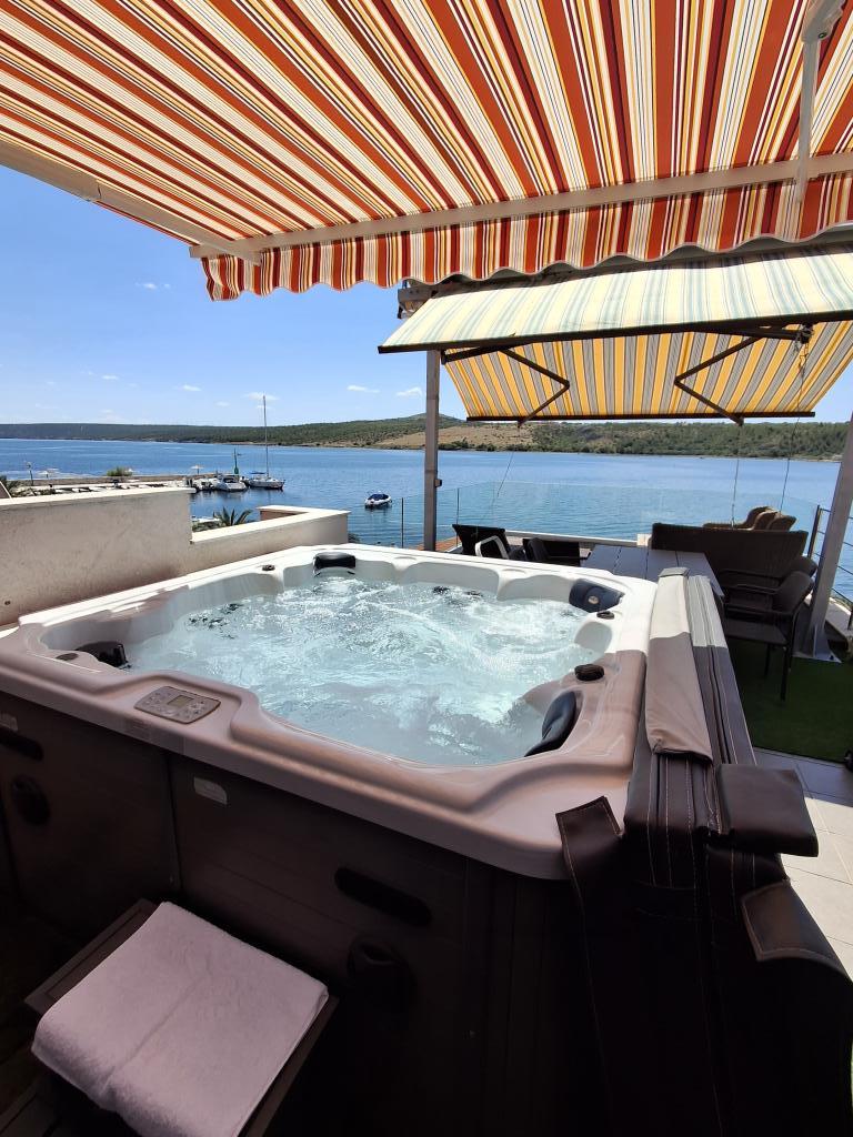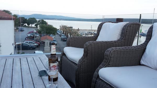 Die Apartments liegen in erster Reihe zum Meer. Sie befinden sich im Zentrum von Posedarje mit Blick auf den Hafen und die Küste. Der erste kleine Badestrand ist 50 m entfernt, der große Strand 150 m. Die Apartments befinden sich in einem Einfamilienhaus mit separatem Eingang. Alle Apartments verfügen über einen Balkon oder eine Terrasse und sind mit Geschirr, Bettwäsche und Handtüchern ausgestattet. Klimaanlage und Smart-TV sind ebenfalls vorhanden. Die Apartments sind für maximal 2 Personen ausgelegt. Wir bieten ein Standard-Apartment und ein Deluxe-Apartment mit einer 50 m² großen Dachterrasse mit privatem Whirlpool (nur für dieses Apartment), Liegestühlen, Handtüchern und Markisen für Motorräder. Ein Teil der Terrasse ist zum Schutz vor Regen und starker Sonneneinstrahlung überdacht, sodass sie ganztägig genutzt werden kann. Hinweis: Die Apartments sind nur für 2 Erwachsene ausgelegt. Eine Unterbringung weiterer Personen ist nicht möglich. Kinder unter 8 Jahren können nicht aufgenommen werden. Wir akzeptieren nur einen kleinen, nicht aggressiven Hund bis zu 3 kg, und der Hund muss auf dem Boden schlafen.