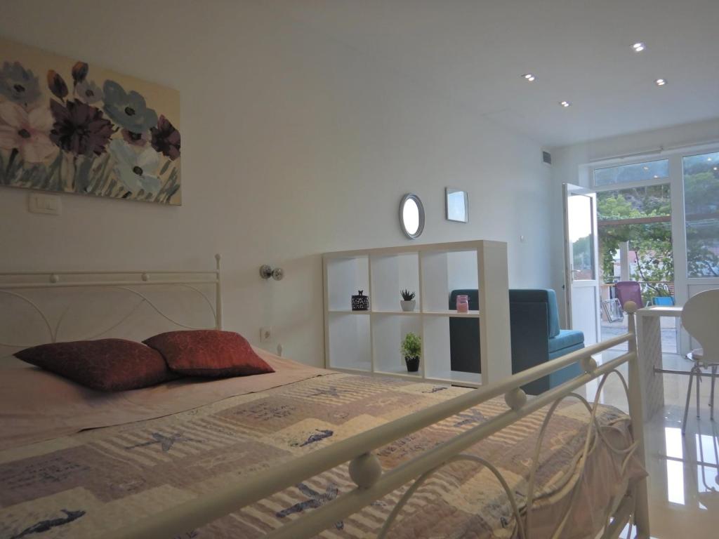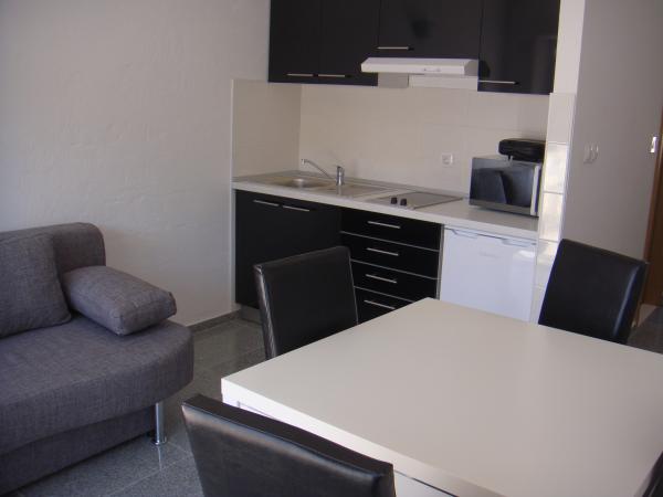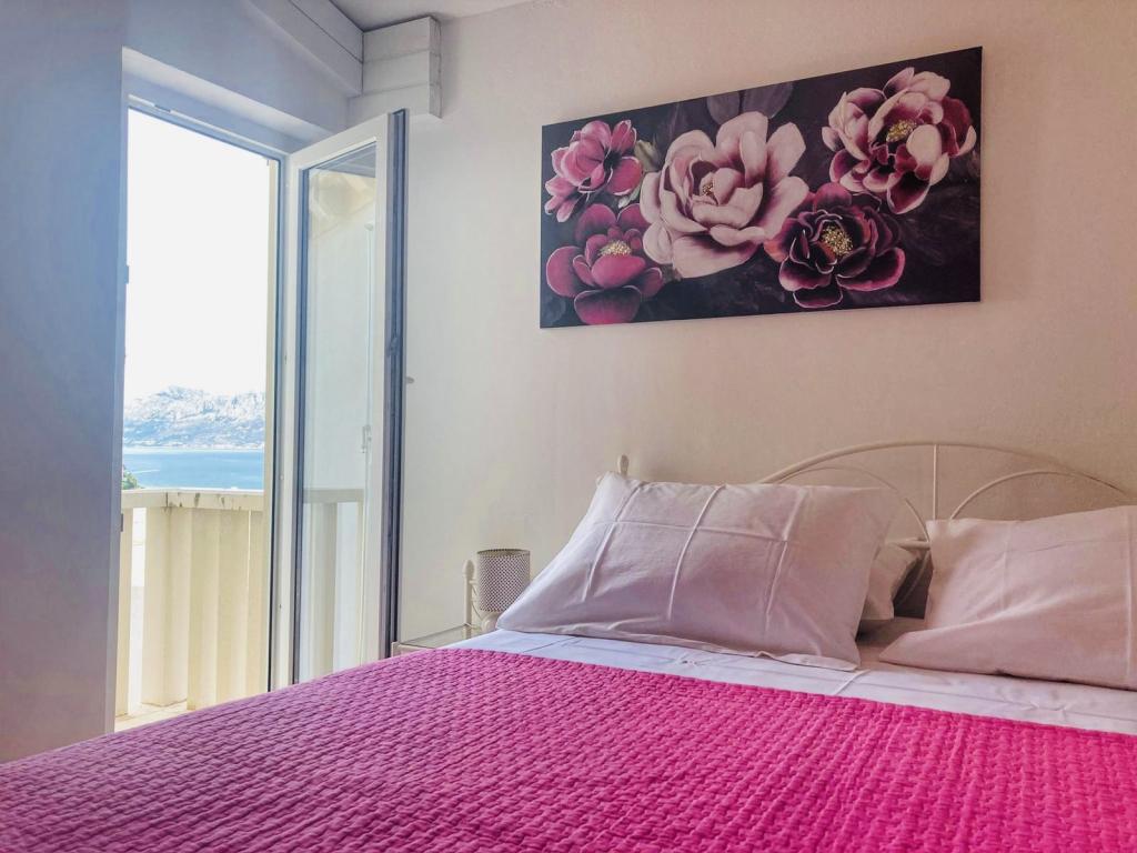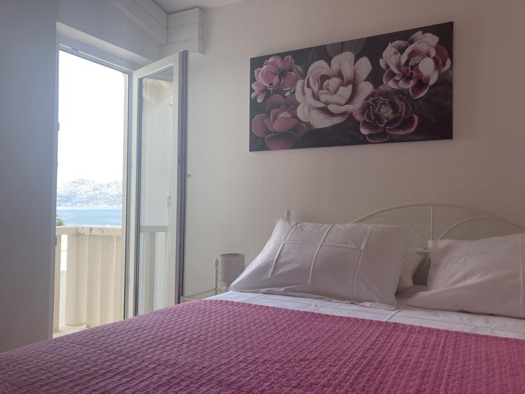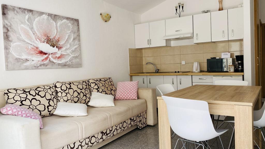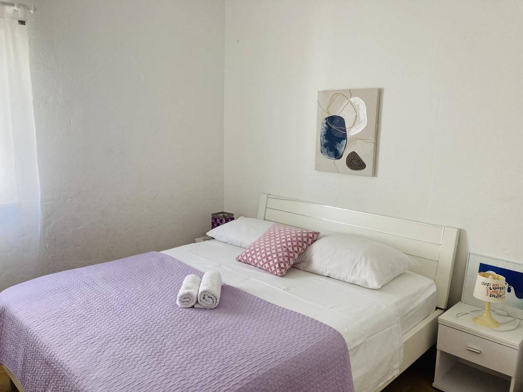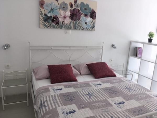 Ferienwohnung 6 für 2 Personen mit einer schönen Aussicht auf das Meer, sonnig und sehr geräumig und mit drei Schlafzimmer mit Doppelbetten, Wohnzimmer mit Doppelbett, zwei Bäder, Massagedusche, zwei Klimaanlagen, Induktionsherd, Spülmaschine, Waschmaschine , Kaffeemaschine, Wasserkocher, Mikrowelle und Kühlschrank. Terrasse mit Kamin, ein Grillplatz und eine Terrasse mit Blick aufs Meer, die getrennte Tische und Stühle haben. TV ist im Wohnzimmer und WLAN-Internetzugang ist vorhanden. Es ist ausgestattet mit Geschirr für die Zubereitung und Servieren von Speisen und Getränken und Besteck in ausreichender Menge. Es befindet sich im ersten Stock des Hauses in der Stadtmitte entfernt. Es liegt direkt am Meer (40 m) Geschäft (50 m), zahlreiche Strände, Restaurants, Bars und andere gastronomische Betriebe befinden. Der Preis beinhaltet einen Parkplatz vor dem Haus, die Verwendung des Bootsanlegestellen, Bettwäsche und Handtücher, Endreinigung und die Nutzung von Kinderbett bei Bedarf