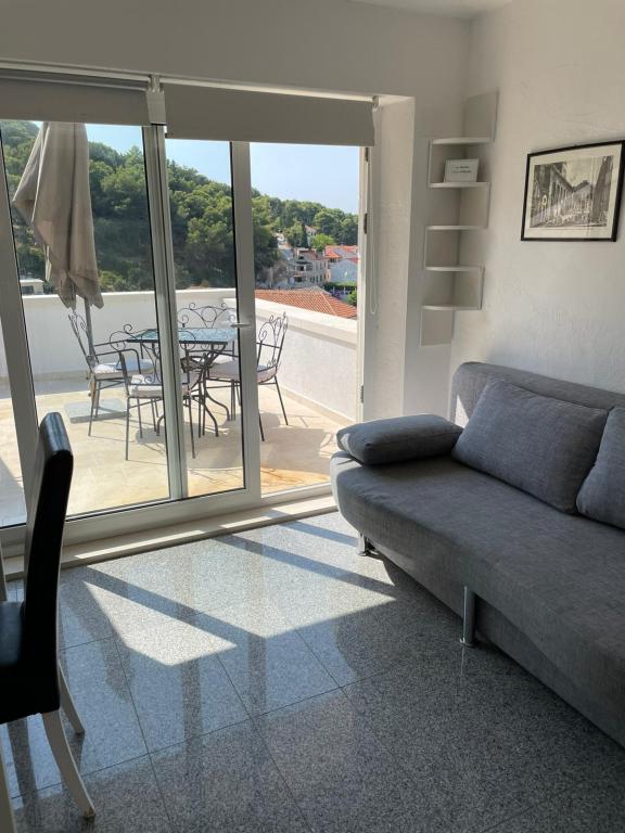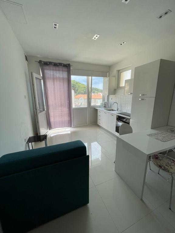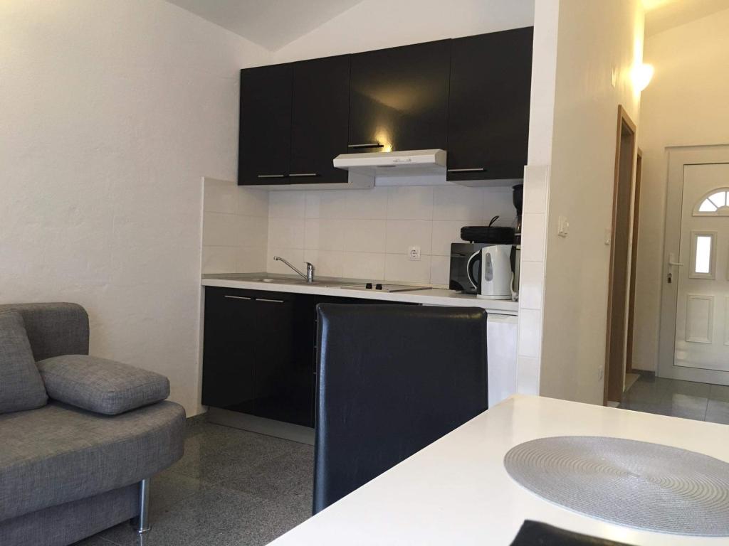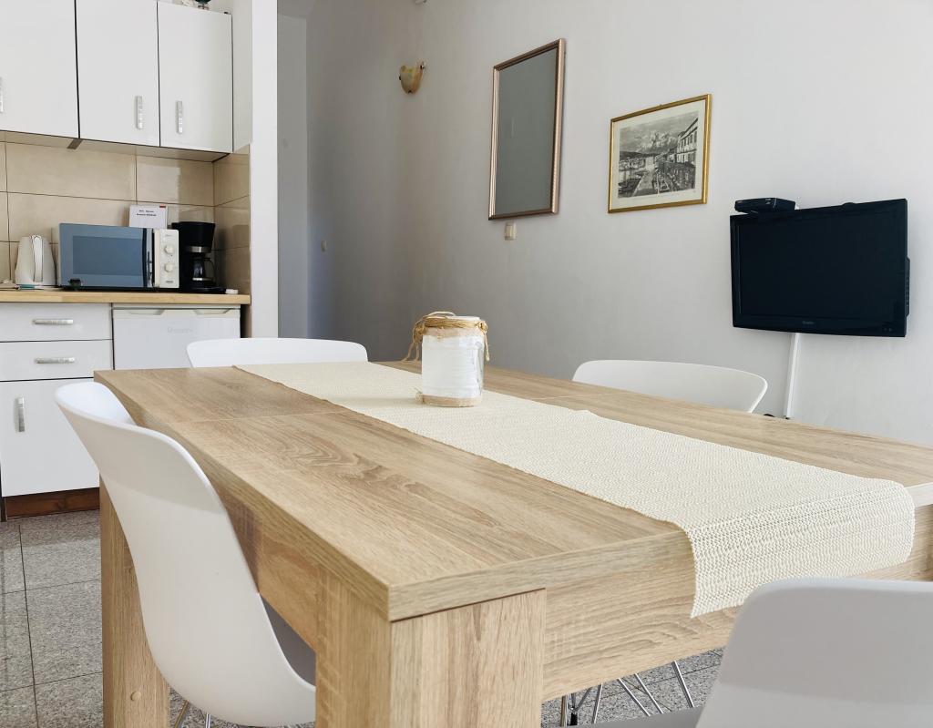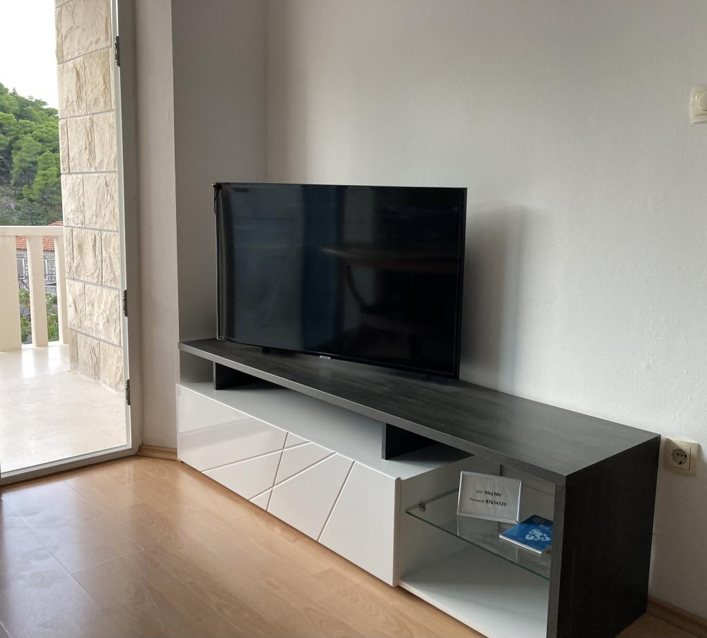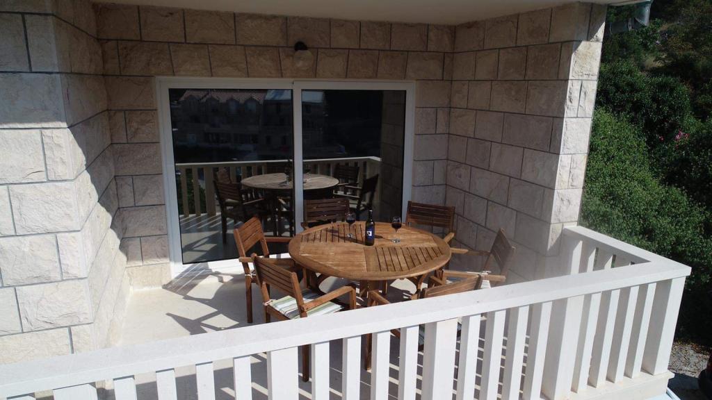 Ferienwohnung 6 für 2 Personen mit einer schönen Aussicht auf das Meer, sonnig und sehr geräumig und mit drei Schlafzimmer mit Doppelbetten, Wohnzimmer mit Doppelbett, zwei Bäder, Massagedusche, zwei Klimaanlagen, Induktionsherd, Spülmaschine, Waschmaschine , Kaffeemaschine, Wasserkocher, Mikrowelle und Kühlschrank. Terrasse mit Kamin, ein Grillplatz und eine Terrasse mit Blick aufs Meer, die getrennte Tische und Stühle haben. TV ist im Wohnzimmer und WLAN-Internetzugang ist vorhanden. Es ist ausgestattet mit Geschirr für die Zubereitung und Servieren von Speisen und Getränken und Besteck in ausreichender Menge. Es befindet sich im ersten Stock des Hauses in der Stadtmitte entfernt. Es liegt direkt am Meer (40 m) Geschäft (50 m), zahlreiche Strände, Restaurants, Bars und andere gastronomische Betriebe befinden. Der Preis beinhaltet einen Parkplatz vor dem Haus, die Verwendung des Bootsanlegestellen, Bettwäsche und Handtücher, Endreinigung und die Nutzung von Kinderbett bei Bedarf