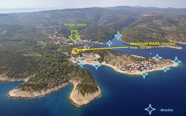 Die Wohnungen befinden sich dorthin zu gelangen, außerhalb des Stadtzentrums (200 m) in der Bucht Ticja Hafen, in einer ruhigen und von Grün umgeben. Strand des Hauses nur 3 Minuten zu Fuß ist aus Stein und Kies. Am Strand kein Gedränge, und das Meer ist kristallklar. Die Apartments sind neu und komplett ausgestattet. Die Insel ist gut mit der Fähre zum Festland (Supetar, Sumartin) / Tag während der Saison und bis zu 15 Schiffe verbunden. Herzlich Willkommen!