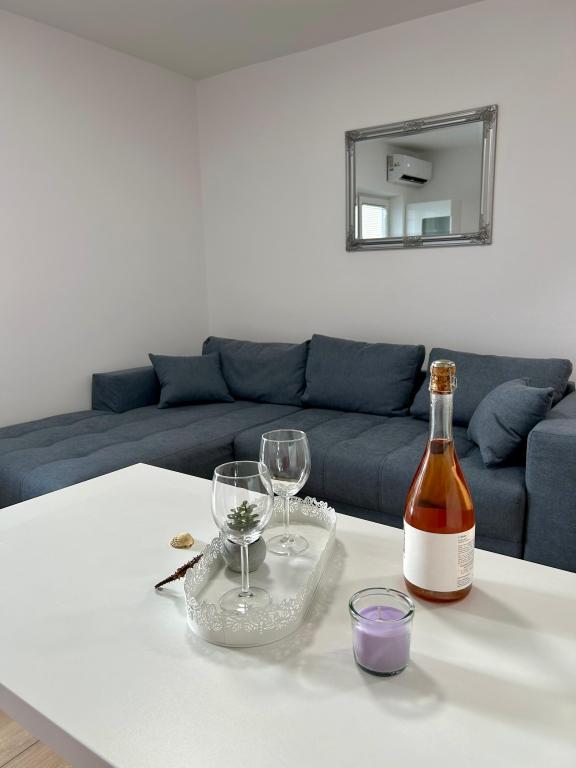 Wir haben eine Woche mit unseren Kindern in der Wohnung verbracht. Es ist eine voll ausgestattete, sehr saubere und schön eingerichtete Wohnung mit zwei Schlafzimmern mit großen, bequemen Betten, einem Wohnzimmer mit Kochnische und einem Badezimmer. Die Wohnung ist klimatisiert, was bei Temperaturen über 30 Grad Celsius ein Segen war. :) Zwei Balkone mit wunderschönem Meerblick, jeweils mit Tisch und Stühlen. Abends konnten wir dort bei einem Glas Wein und Paški-Käse sitzen. Das kostenlose Parken war ein zusätzlicher Bonus. Was uns jedoch am meisten begeisterte, war die Freundlichkeit und Gastfreundschaft der Gastgeber, die uns wunderbar willkommen hießen. Wir haben uns sehr wohl gefühlt und richtig entspannt. Wir fühlten uns wie bei guten Freunden. Vielen Dank für alles, wir kommen wieder.