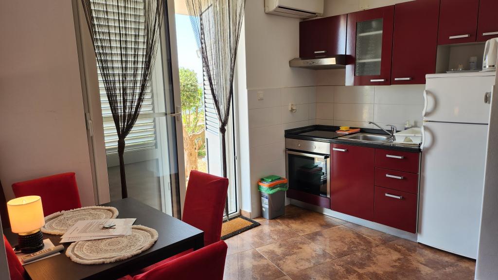 Komplett möblierte Apartments direkt an der Promenade und am Strand, erste Reihe zum Meer. Die Wohnungen im Erdgeschoss verfügen über einen eigenen Garten. Das Dorfzentrum liegt 1000 m von der Wohnung entfernt. In der Nähe gibt es Cafés und Restaurants und ein Geschäft ist 10 Gehminuten entfernt. . Apartment 7 (70619) befindet sich an einem anderen Standort, in der JJ Strossmayera-Straße 31.