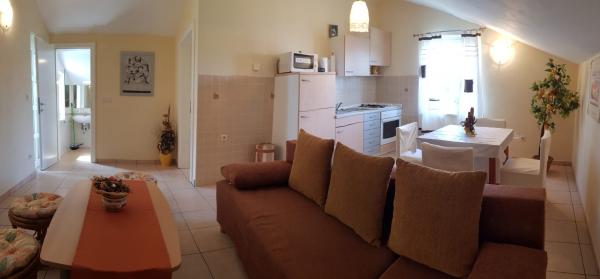 Apartment Oleander (51 m2) besteht aus einem offenen Raum mit Wohnzimmer (Zusatzbett für 2 Personen), Esszimmer und Küche, einem separaten Schlafzimmer mit Doppelbett (2 Personen) und einem Badezimmer mit Duschkabine und WC. Im Schlafzimmer gibt es ein Doppelbett und im Wohnzimmer ein Schlafsofa, das als Zustellbett für 2 Personen genutzt werden kann. Es befindet sich im 1. Stock, ist klimatisiert und verfügt über WLAN. Im Hof gibt es einen Garten und eine Terrasse (12 m2), die zum Entspannen im Freien mit Grill geeignet ist. Die Terrasse und der Grill werden ausschließlich von den Gästen des Apartments genutzt und mit niemandem geteilt, so dass sie hier Zeit mit geselligen Beisammensein, Abendessen oder Lesen eines Buches zwischen den mediterranen Pflanzen verbringen können. Der Parkplatz befindet sich neben dem Gebäude und ist kostenlos. Das Meer und der Strand sind etwa 10 Gehminuten entfernt und das Zentrum von Povljana (Geschäfte, Cafés, Restaurants usw.) erreichen Sie in 5 Gehminuten. Der Gastgeber befindet sich in der Nähe und steht Ihnen bei Bedarf zur Verfügung.