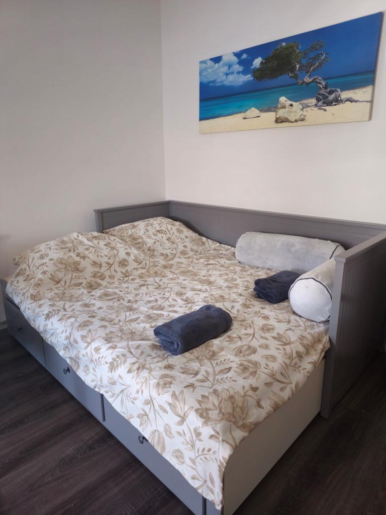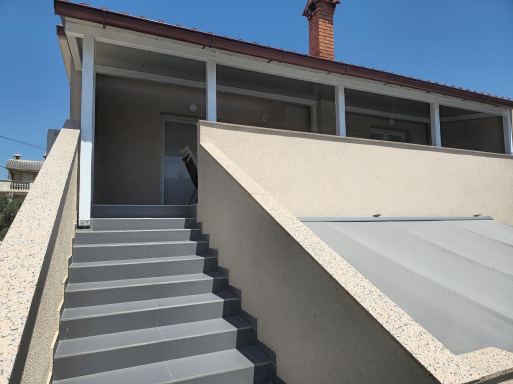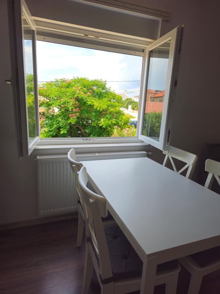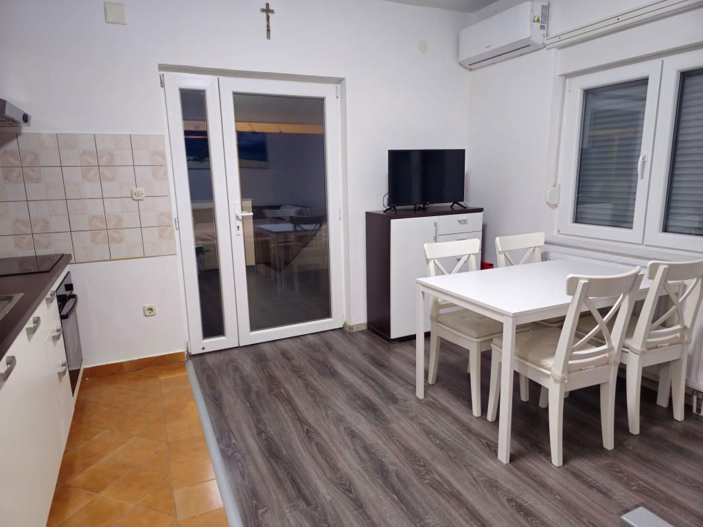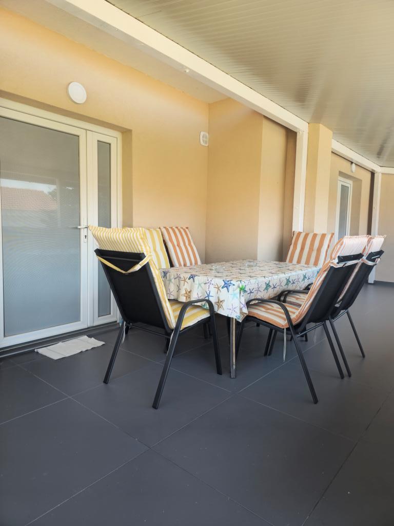 Vollständig und modern ausgestattete Wohnung mit großer überdachter Terrasse in ruhiger Lage in Povljana. Die Wohnung verfügt über zwei Schlafzimmer und ein Schlafsofa im Wohnzimmer. Alle Räume sind klimatisiert. Das geräumige Badezimmer ist mit einer Waschmaschine ausgestattet. Die Küche bietet einen Geschirrspüler, einen Elektroherd, einen Backofen und einen großen Doppelkühlschrank mit Gefrierfach. WLAN und TV sind vorhanden. Das Apartment Tia befindet sich im ersten Stock eines Einfamilienhauses mit umzäuntem und videoüberwachtem Garten. Ein Grillplatz steht im Garten zur Verfügung. Das Stadtzentrum ist nur 100 m von der Wohnung entfernt. Der Sandstrand ist in 10 Minuten zu Fuß oder 2 Minuten mit dem Auto erreichbar. Parkplätze befinden sich direkt vor dem Haus.