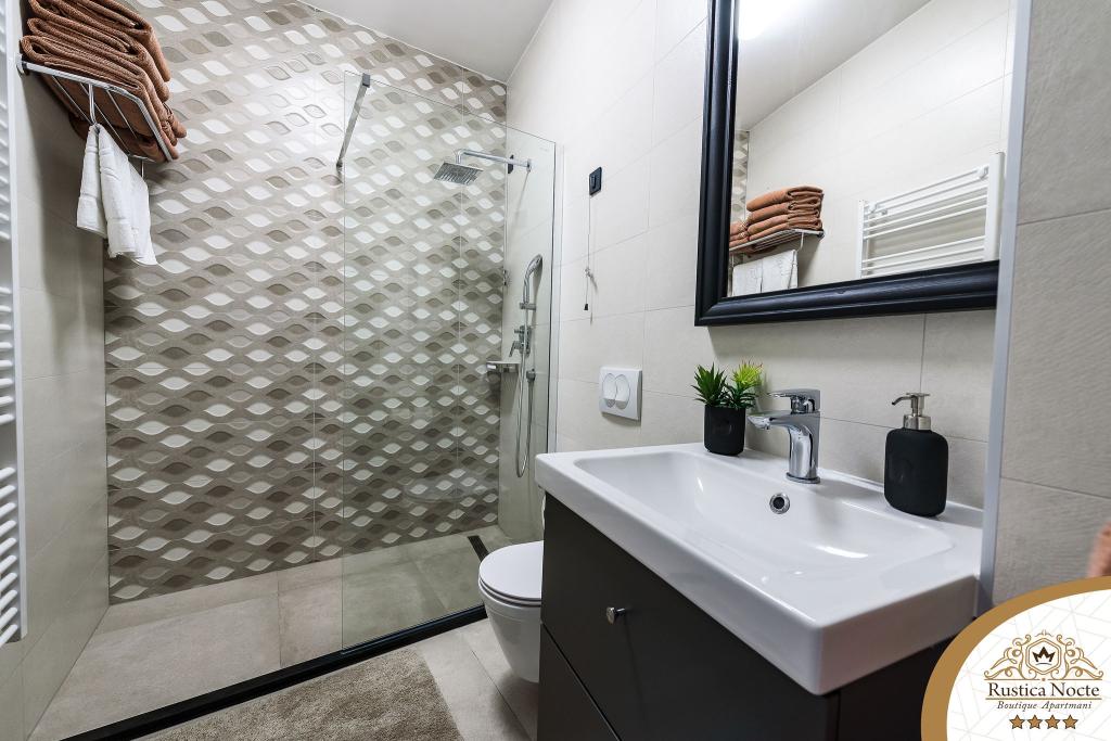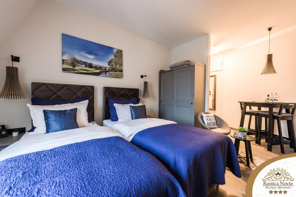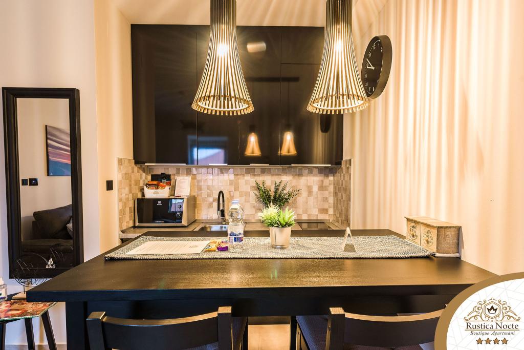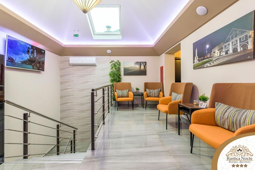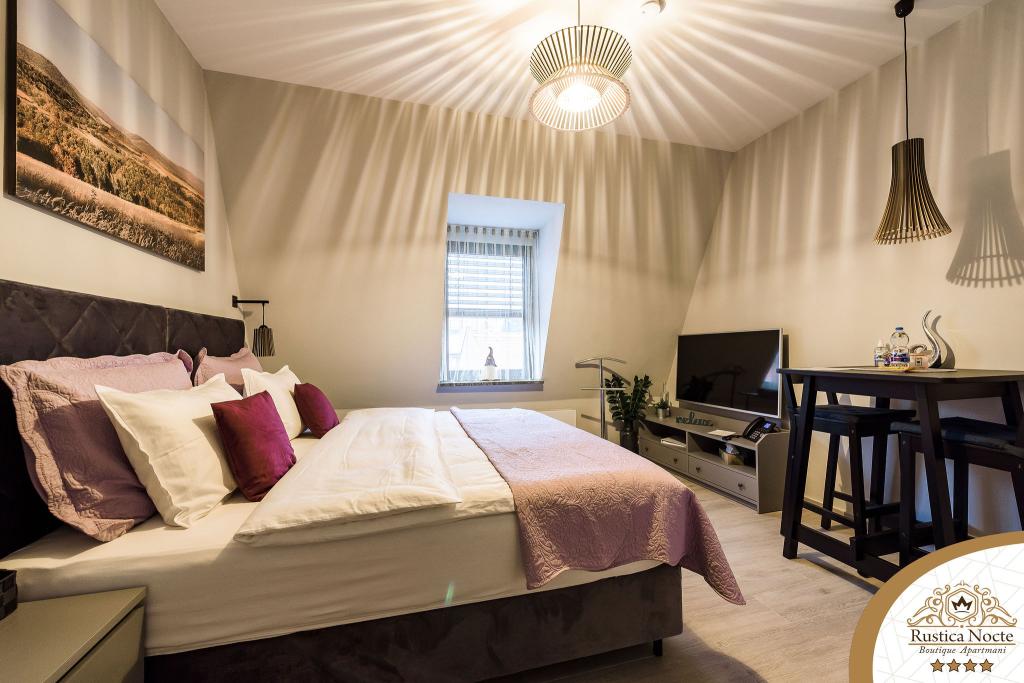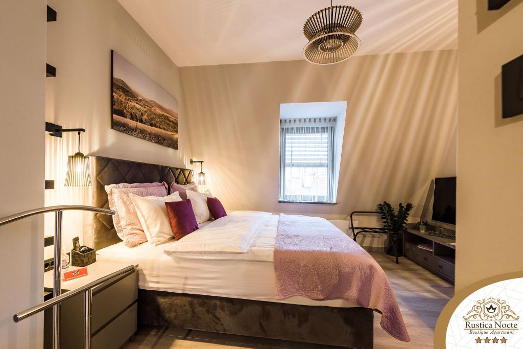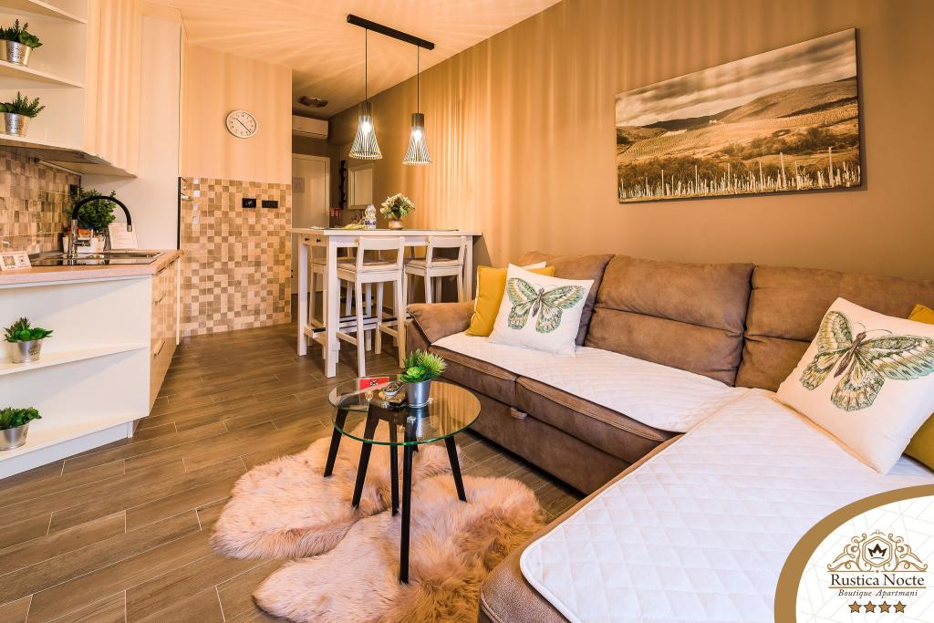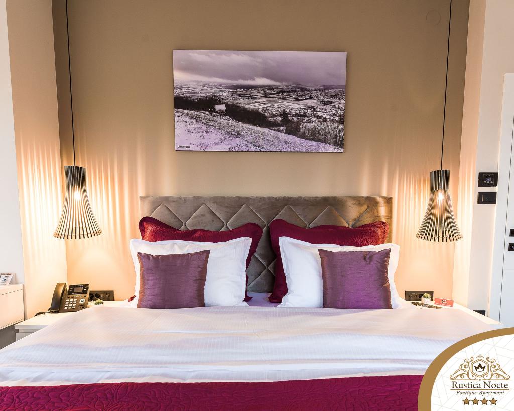 Im Herzen von Slawonien, am Anfang der Fußgängerzone in Požega, sind die Apartments Rustica Nocte Boutique der perfekte Ort für einen Traumurlaub. Um Ihren Urlaub so angenehm wie möglich zu gestalten, bieten Ihnen unsere modernen Apartments eine hochwertige Ausstattung, besonders hervorheben möchten wir das smarte Verwaltungssystem für das gesamte Apartment, kostenloses Highspeed-WLAN sowie kabelgebundenes und kabelloses Internet, Kingsize-Boxspringbetten, digitale Safes, Ultra-HD-Ambilight-Fernseher, 50-Zoll-TV-Empfänger mit Netflix, Satelliten- und lokalen Programmen und Ambilight-LED-Beleuchtung an den Fenstern, belüftete und beheizte Badezimmer und voll ausgestattete Küchen in jedem der Apartments. Jedes Apartment enthält außerdem eine Minibar mit alkoholfreien und alkoholischen Getränken und Snacks. Die Apartments verfügen außerdem über eine Kinderecke mit Tischen, Spielzeug, Malbüchern und Spielteppichen. Mit all dem können Sie Ihren Urlaub ganz unbeschwert planen.