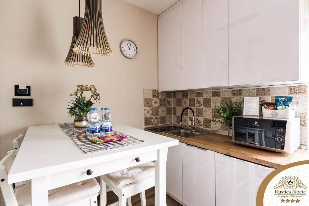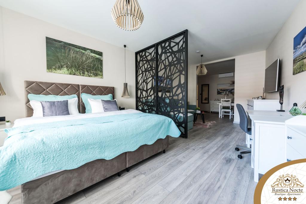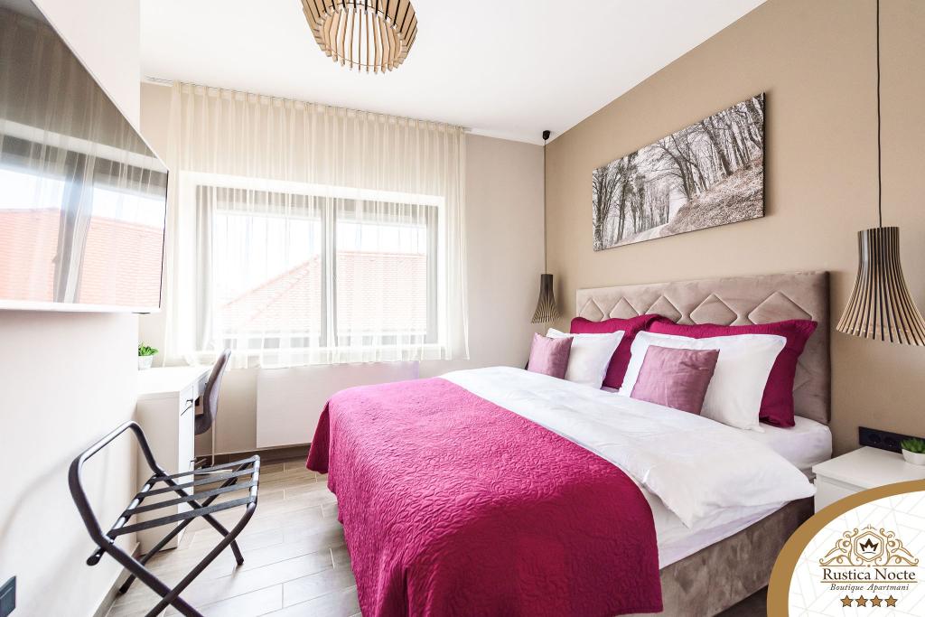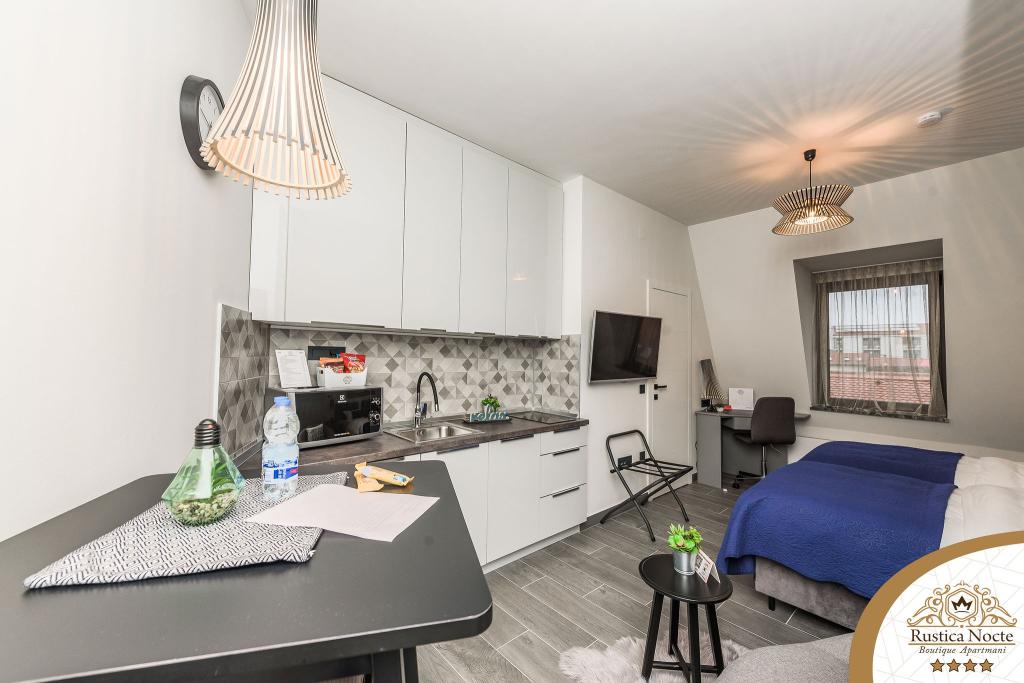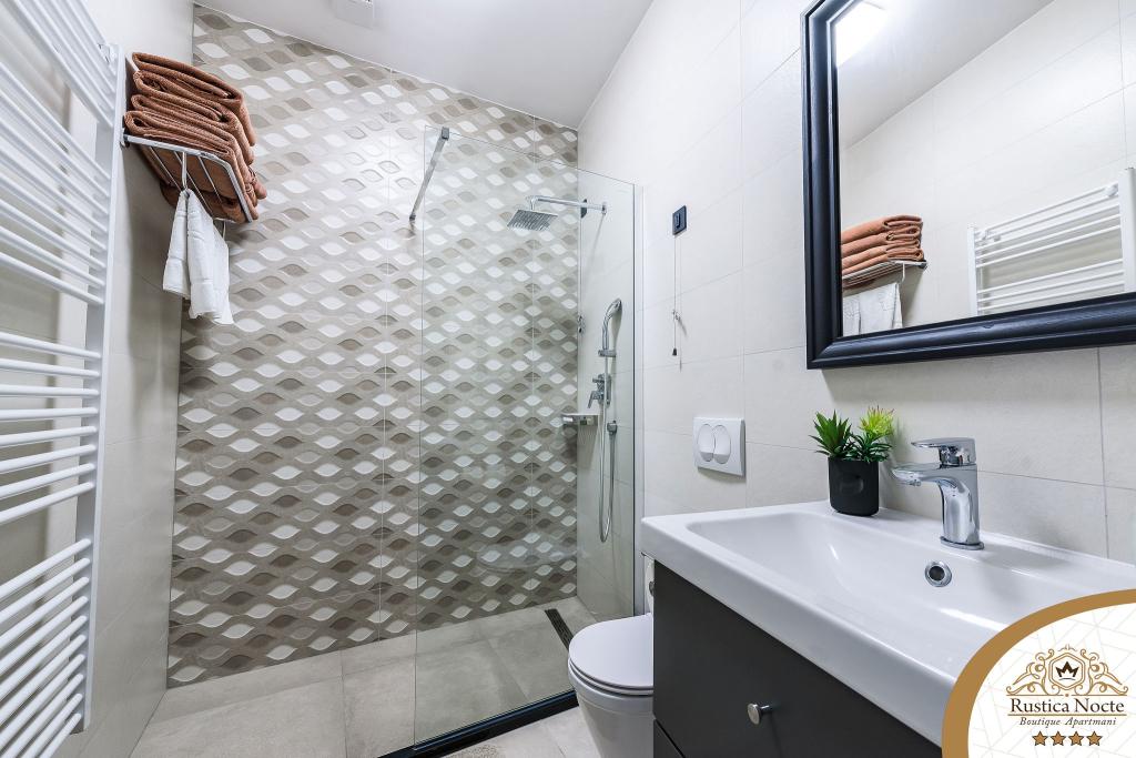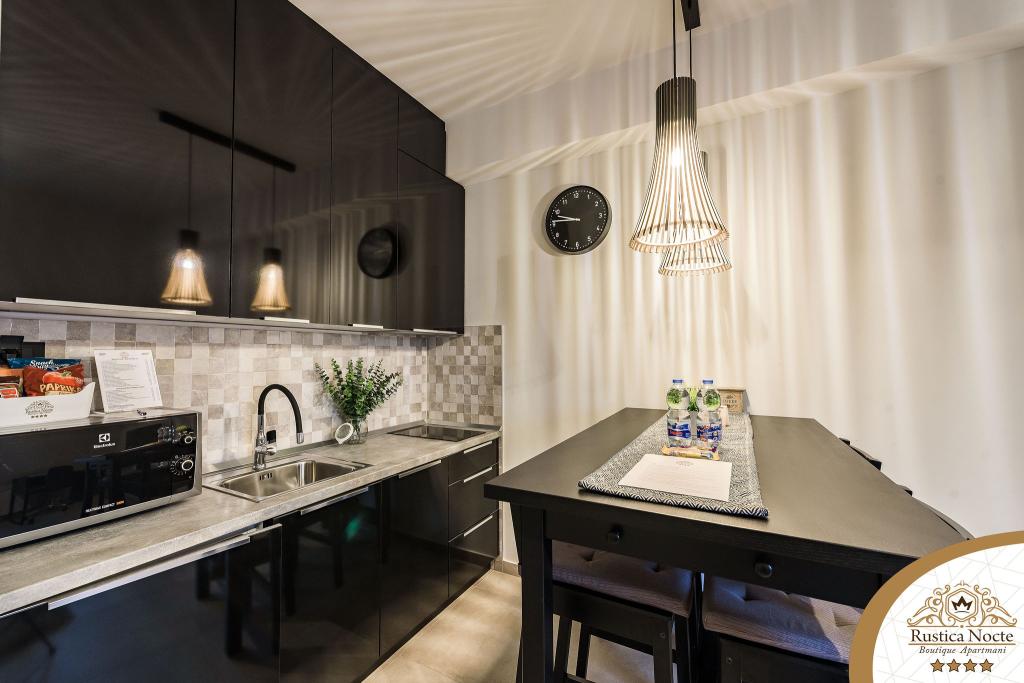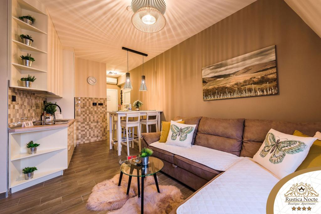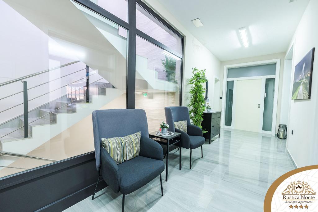 Im Herzen von Slawonien, am Anfang der Fußgängerzone in Požega, sind die Apartments Rustica Nocte Boutique der perfekte Ort für einen Traumurlaub. Um Ihren Urlaub so angenehm wie möglich zu gestalten, bieten Ihnen unsere modernen Apartments eine hochwertige Ausstattung, besonders hervorheben möchten wir das smarte Verwaltungssystem für das gesamte Apartment, kostenloses Highspeed-WLAN sowie kabelgebundenes und kabelloses Internet, Kingsize-Boxspringbetten, digitale Safes, Ultra-HD-Ambilight-Fernseher, 50-Zoll-TV-Empfänger mit Netflix, Satelliten- und lokalen Programmen und Ambilight-LED-Beleuchtung an den Fenstern, belüftete und beheizte Badezimmer und voll ausgestattete Küchen in jedem der Apartments. Jedes Apartment enthält außerdem eine Minibar mit alkoholfreien und alkoholischen Getränken und Snacks. Die Apartments verfügen außerdem über eine Kinderecke mit Tischen, Spielzeug, Malbüchern und Spielteppichen. Mit all dem können Sie Ihren Urlaub ganz unbeschwert planen.