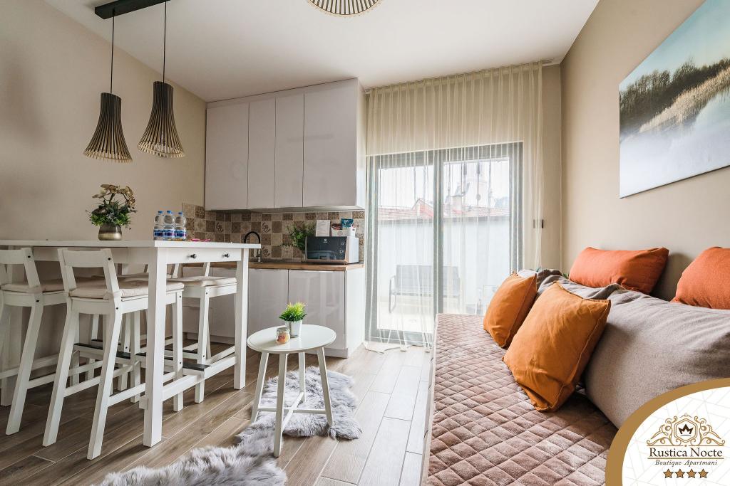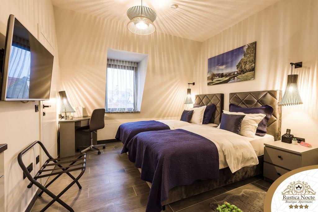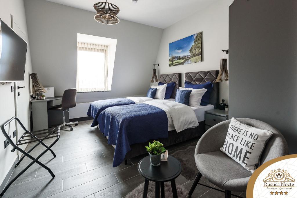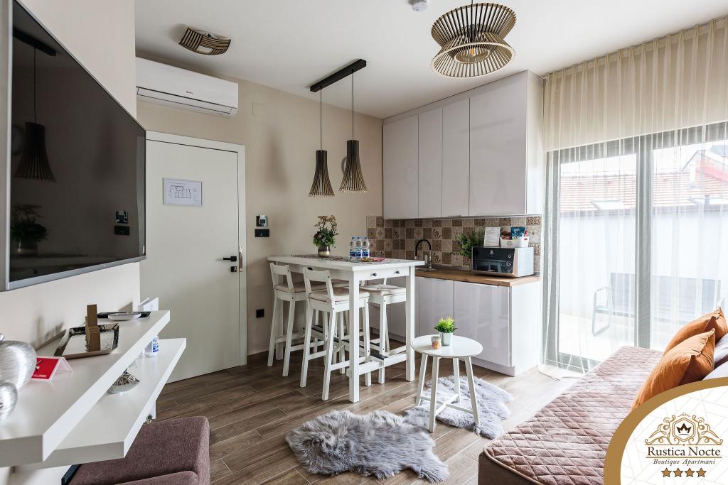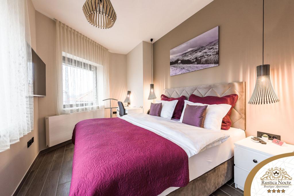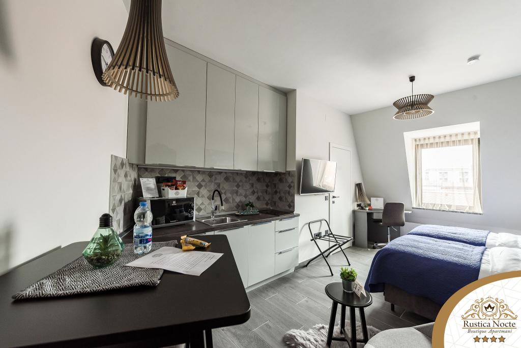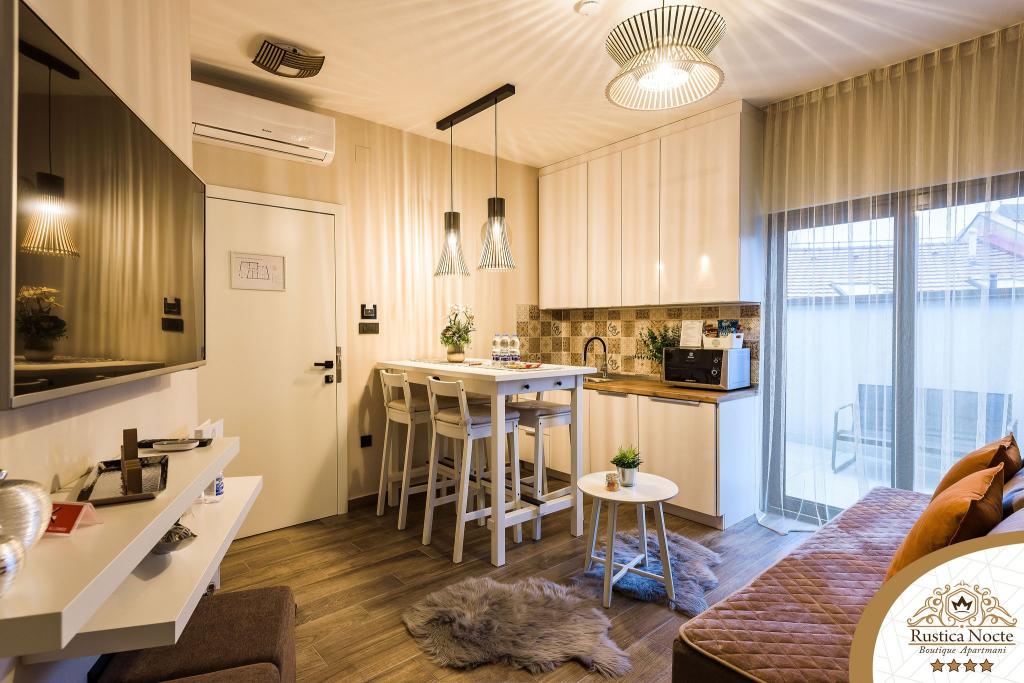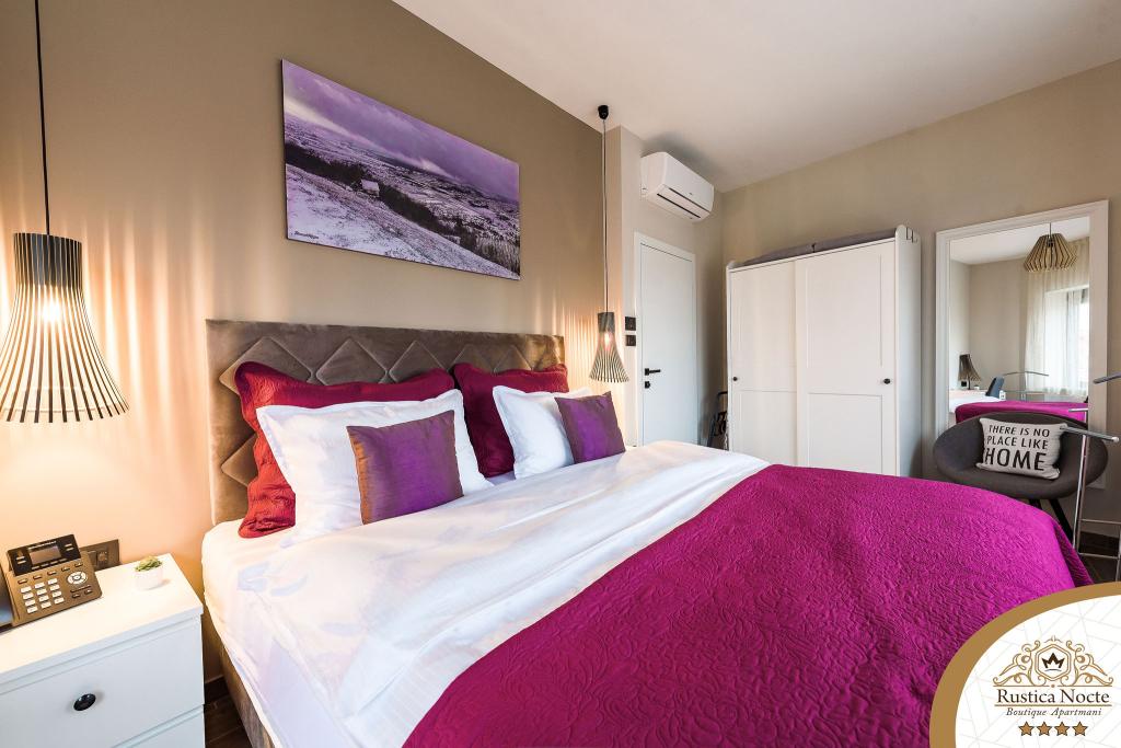 Im Herzen von Slawonien, am Anfang der Fußgängerzone in Požega, sind die Apartments Rustica Nocte Boutique der perfekte Ort für einen Traumurlaub. Um Ihren Urlaub so angenehm wie möglich zu gestalten, bieten Ihnen unsere modernen Apartments eine hochwertige Ausstattung, besonders hervorheben möchten wir das smarte Verwaltungssystem für das gesamte Apartment, kostenloses Highspeed-WLAN sowie kabelgebundenes und kabelloses Internet, Kingsize-Boxspringbetten, digitale Safes, Ultra-HD-Ambilight-Fernseher, 50-Zoll-TV-Empfänger mit Netflix, Satelliten- und lokalen Programmen und Ambilight-LED-Beleuchtung an den Fenstern, belüftete und beheizte Badezimmer und voll ausgestattete Küchen in jedem der Apartments. Jedes Apartment enthält außerdem eine Minibar mit alkoholfreien und alkoholischen Getränken und Snacks. Die Apartments verfügen außerdem über eine Kinderecke mit Tischen, Spielzeug, Malbüchern und Spielteppichen. Mit all dem können Sie Ihren Urlaub ganz unbeschwert planen.