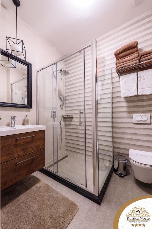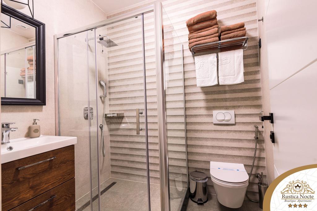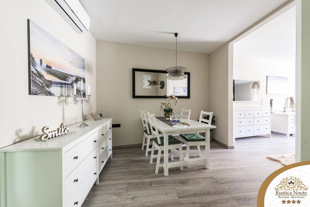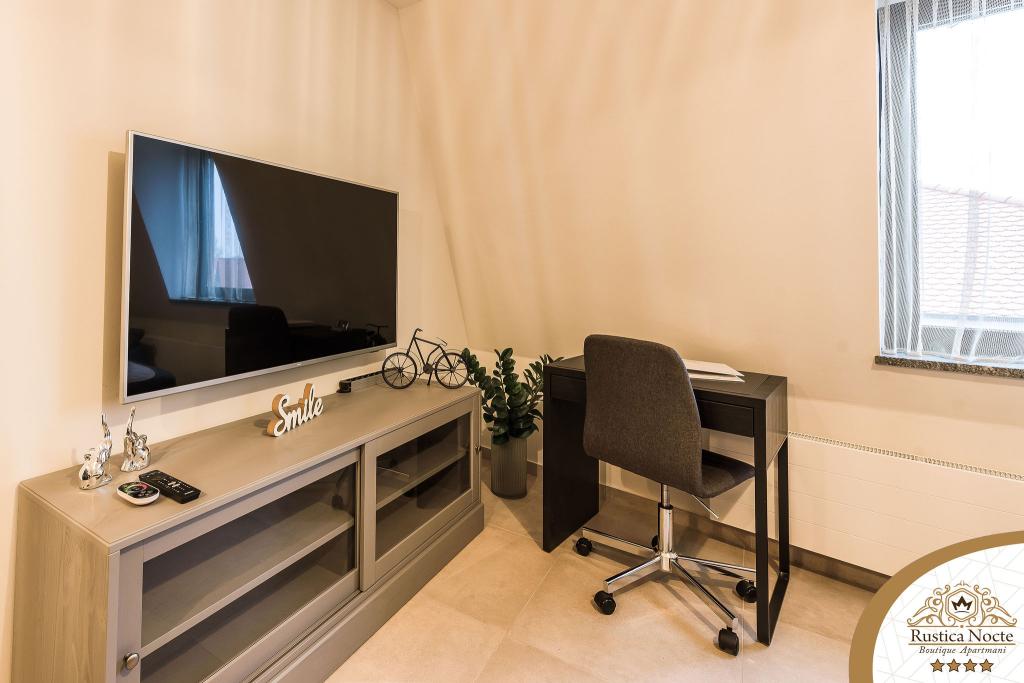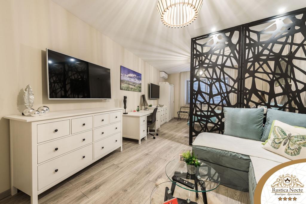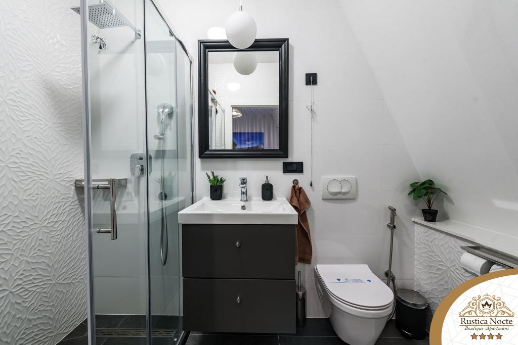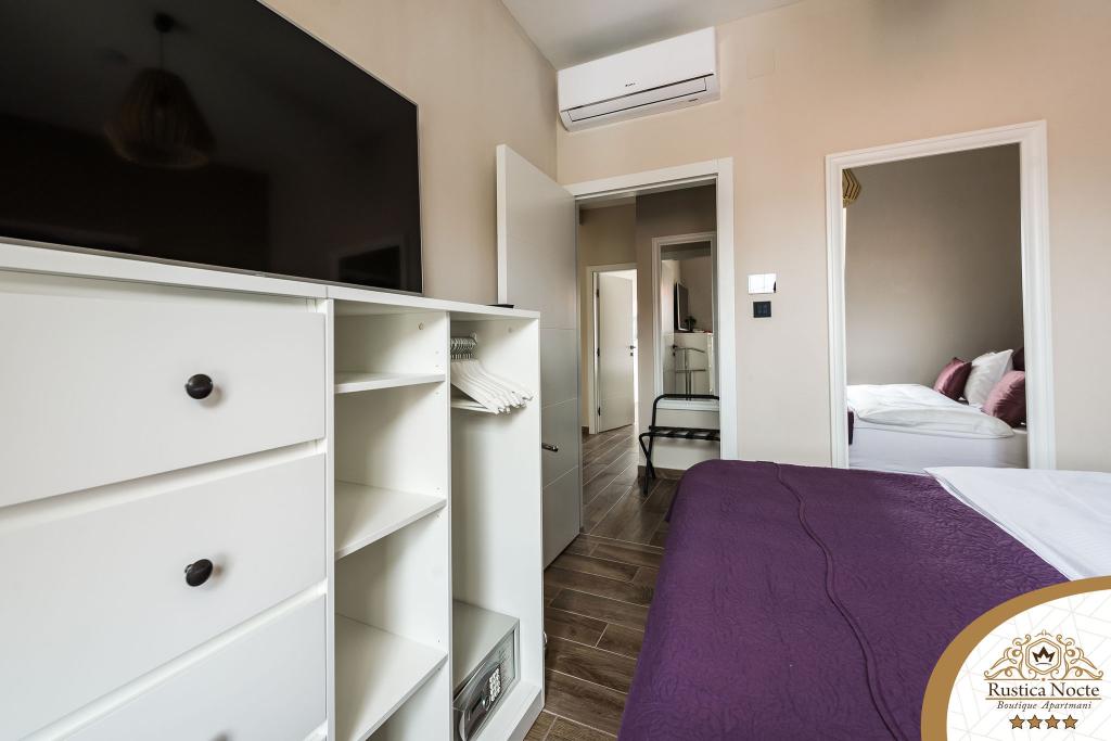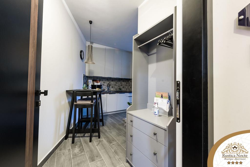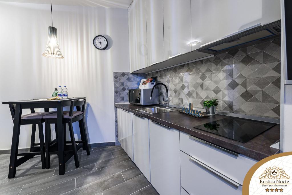 Im Herzen von Slawonien, am Anfang der Fußgängerzone in Požega, sind die Apartments Rustica Nocte Boutique der perfekte Ort für einen Traumurlaub. Um Ihren Urlaub so angenehm wie möglich zu gestalten, bieten Ihnen unsere modernen Apartments eine hochwertige Ausstattung, besonders hervorheben möchten wir das smarte Verwaltungssystem für das gesamte Apartment, kostenloses Highspeed-WLAN sowie kabelgebundenes und kabelloses Internet, Kingsize-Boxspringbetten, digitale Safes, Ultra-HD-Ambilight-Fernseher, 50-Zoll-TV-Empfänger mit Netflix, Satelliten- und lokalen Programmen und Ambilight-LED-Beleuchtung an den Fenstern, belüftete und beheizte Badezimmer und voll ausgestattete Küchen in jedem der Apartments. Jedes Apartment enthält außerdem eine Minibar mit alkoholfreien und alkoholischen Getränken und Snacks. Die Apartments verfügen außerdem über eine Kinderecke mit Tischen, Spielzeug, Malbüchern und Spielteppichen. Mit all dem können Sie Ihren Urlaub ganz unbeschwert planen.