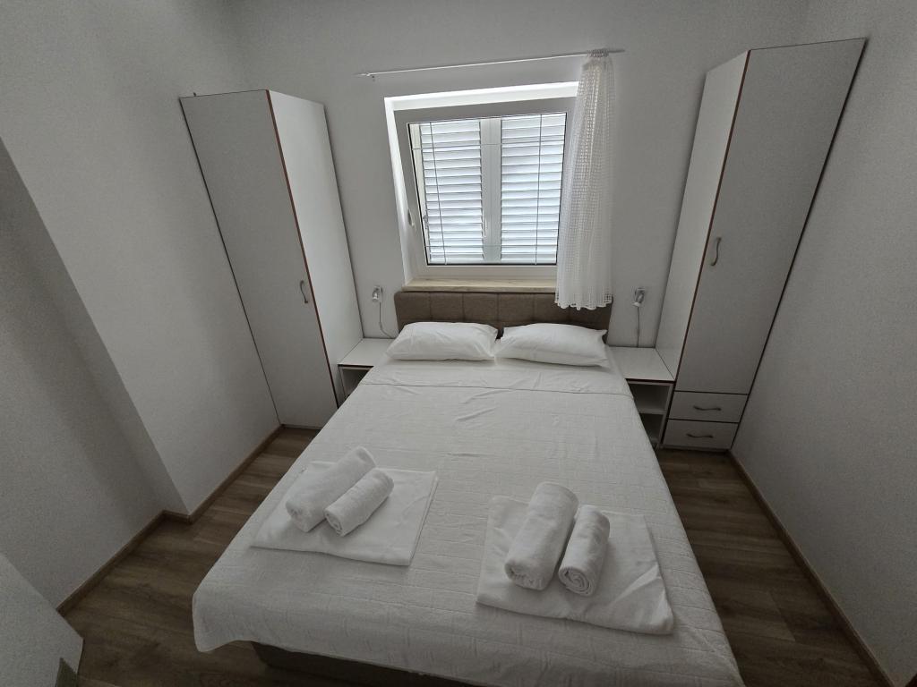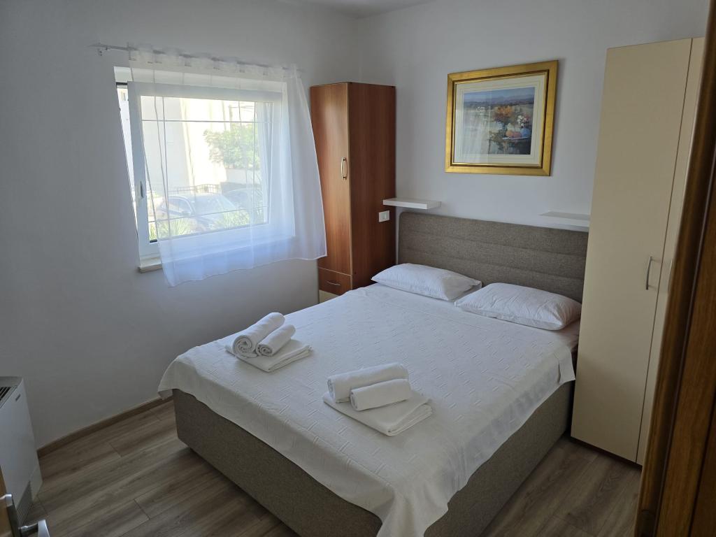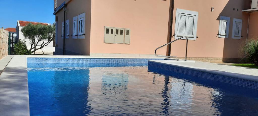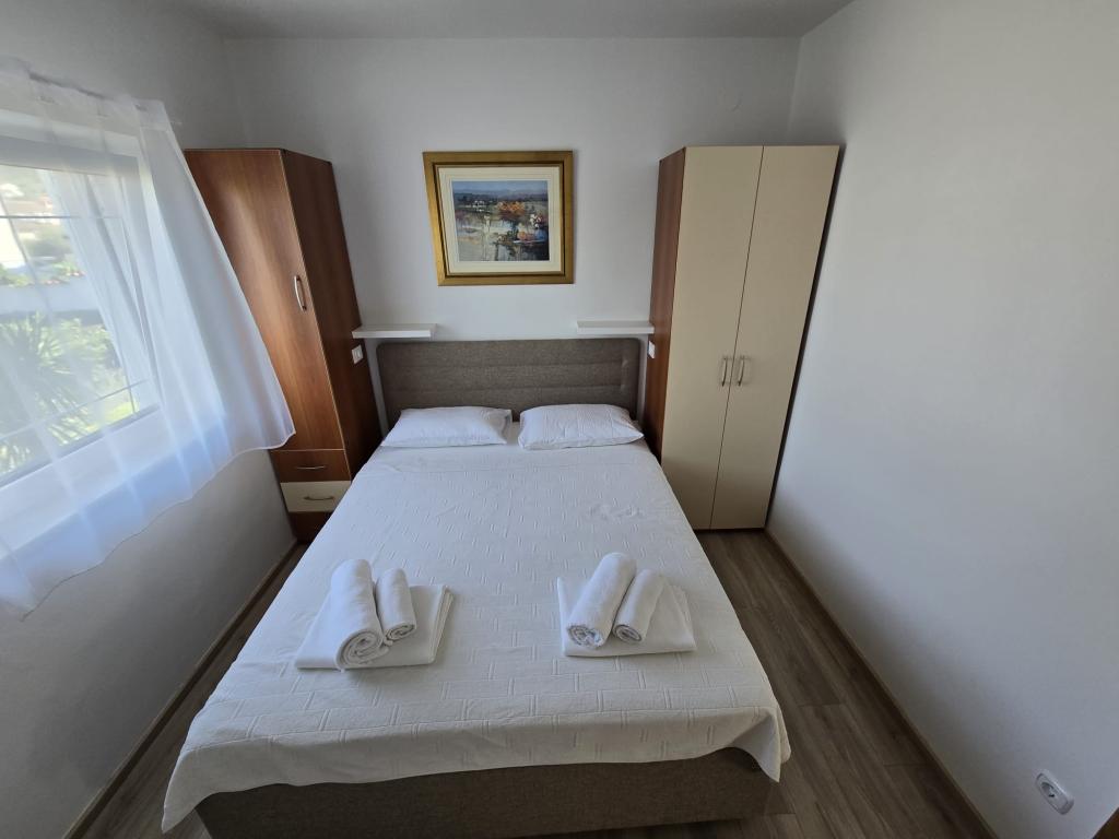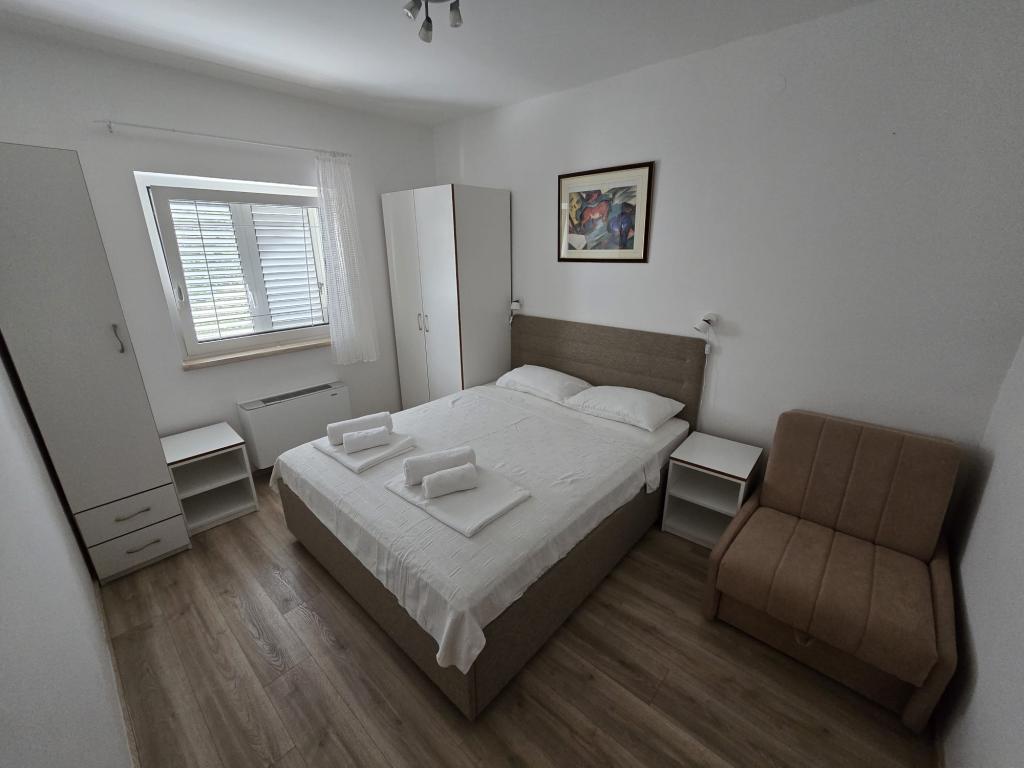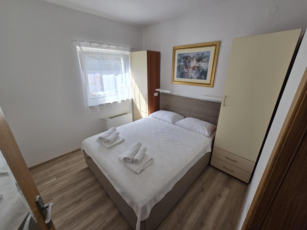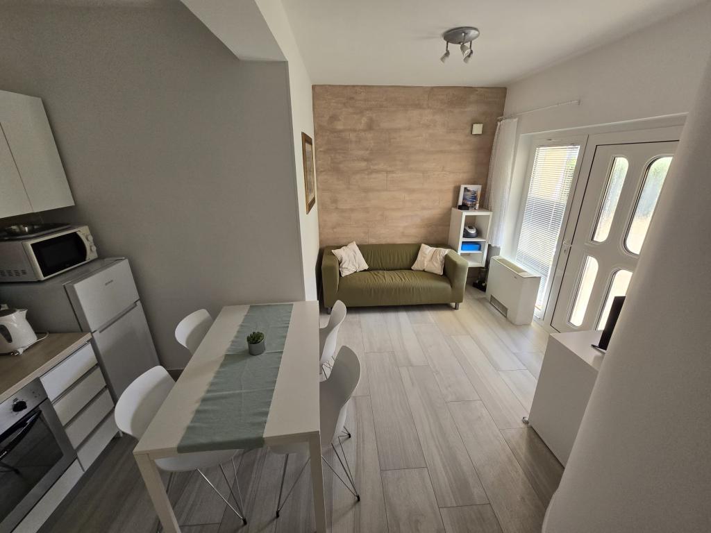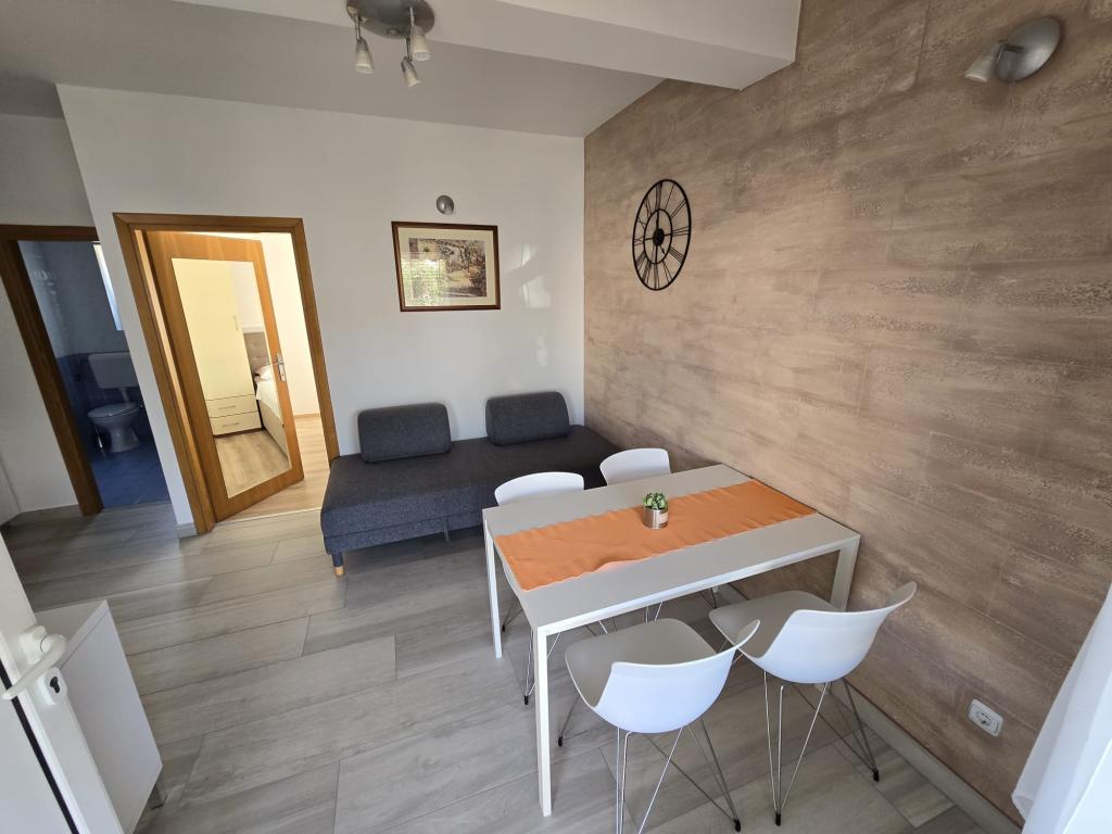 Die Apartments wurden 2004 gebaut und sind modern eingerichtet. Wir bieten zwei Vier-Bett-Appartements. Jede Wohnung ist ausgestattet mit Klimaanlage, Telefon, TV, Sat-Receiver, Radio mit CD, Fön, Kaffeemaschine (Nespresso) und Safe (Tresor) für Ihre persönlichen Wertsachen und Wertsachen. Jede Wohnung hat eine eigene Terrasse mit Gartenmöbeln und Sonnenschirm, und jede Wohnung hat einen Parkplatz. Kostenloser Wi-Fi-Internetzugang steht den Gästen in der gesamten Anlage zur Verfügung. Im Hofteil des Gebäudes gibt es die Möglichkeit, einen Grill und eine Gartenlaube, ein Schwimmbad zu nutzen, und die Gäste können auch Fahrräder benutzen. Durch den großen und gepflegten Garten eignen sich die Apartments besonders für Familien mit Kindern.