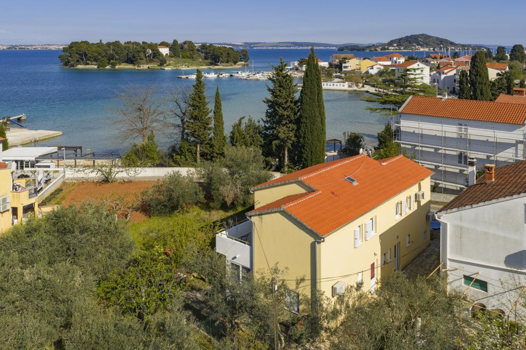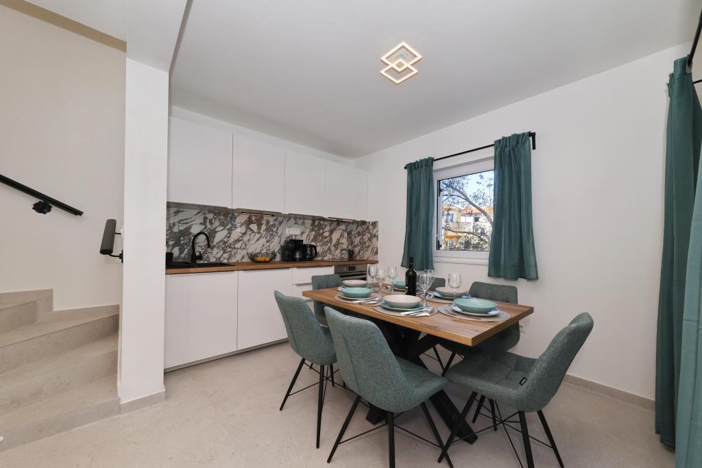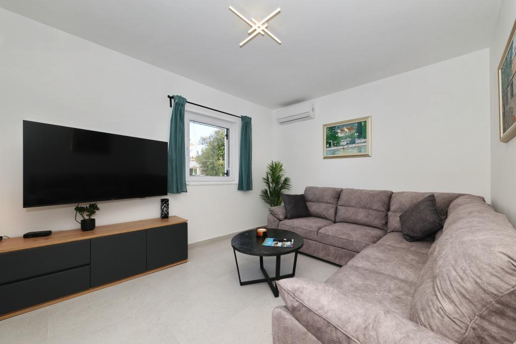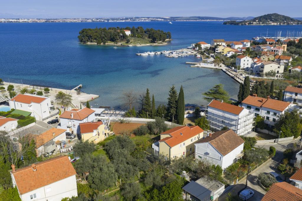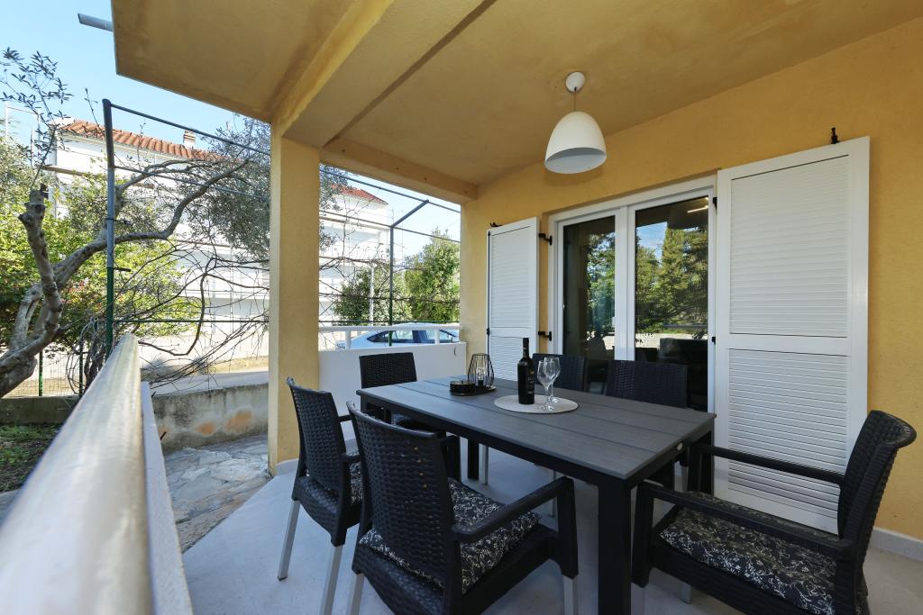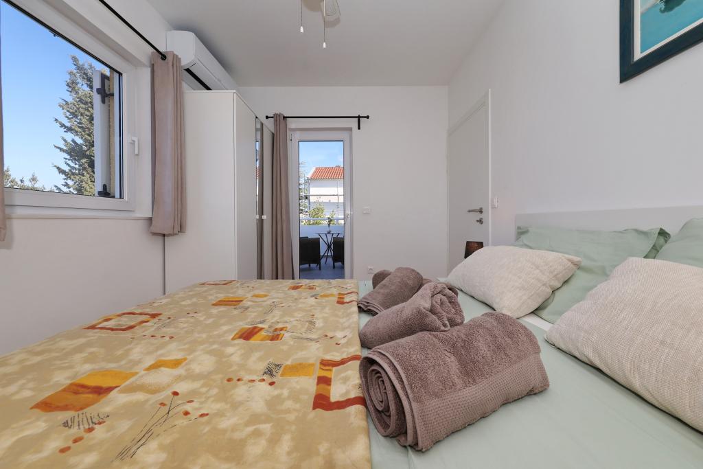 Voll ausgestattete Ferienwohnung mit zwei klimatisierten Schlafzimmern, einer Terrasse im ersten Stock, einer Loggia im Erdgeschoss und privatem Parkplatz in einem ruhigen Teil von Prek, direkt neben dem Sandstrand von Jaz.