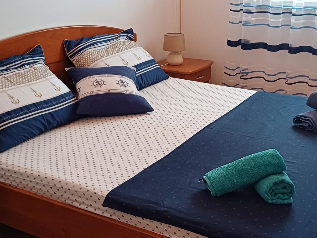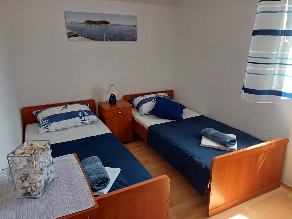 Mit Blick auf die Stadt Zadar, die entfernten Gipfel des Velebit und die Insel Galevac und vor dem Sandstrand von Jaz in der Stadt Preku gelegen, bietet das Apartment Mirjam eine komfortable und warme Unterkunft für Familien mit Kindern und Senioren wie Spaziergänge am Meer, Liebhaber von Radwegen oder Liebhaber einer Tour durch das Zadar-Archipel mit einem gemieteten Schnellboot. Das Apartment Mirjam befindet sich in einem Gebäude, das nur 5 Minuten entfernt ist. Abseits vom Strand, wo Erfrischungen auf mehreren Terrassen von Cafés und Restaurants am Meer angeboten werden. Die Fahrt ins Stadtzentrum dauert nur 12 Minuten. leichte Spaziergänge. Der Gast kann seine Bedürfnisse erfüllen, indem er den Markt, die Taverne, das Restaurant, die Bäckerei und den Tommy-Supermarkt besucht. Mehrere tägliche Bootslinien zwischen der Stadt Preka und der Stadt Zadar ermöglichen es Ihnen, die historischen Werte der Stadt zu besichtigen, die Meeresorgel zu hören, einen Gruß an die Sonne zu senden und eine gute Abendunterhaltung rundet Ihr Erlebnis ab Urlaub. Das Apartment Mirjam auf 54 m2 verfügt über ein Wohnzimmer mit Küche, einen Flur, zwei Schlafzimmer, ein Badezimmer mit WC und eine Terrasse.