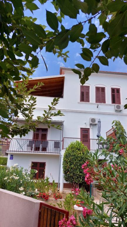 Das Apartment mit zwei Schlafzimmern befindet sich im ersten Stock einer alten Steinvilla aus dem 16. Jahrhundert in einem ruhigen Teil von Preko. Das Haus ist nur wenige Schritte von drei Stränden (Sandstrände Jaz, Kies Kašun und Beton vor dem Haus) und einem Sandvolleyballplatz entfernt. An den Stränden gibt es zahlreiche Einrichtungen für Kinder und Restaurants. Entlang des Strandes gibt es eine Promenade für ruhige und romantische Spaziergänge in der Abenddämmerung. Die Entfernung vom Zentrum beträgt etwa zweihundert Meter. Die Wohnung verfügt über zwei Schlafzimmer mit Doppelbetten, ein Badezimmer, Küche und Terrasse mit Blick auf das Meer und die Stadt Zadar. Parkplätze sind vorhanden.