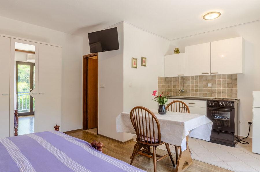 Die Apartments Kuzma befinden sich in einer kleinen malerischen Bucht auf der Insel Korcula, in der Nähe von Blato. Das Haus liegt in einem schönen Pinienwald, etwas abseits der Hauptstraße, so dass die Gäste die Ruhe genießen können. Der Pinienwald fördert ein ausgezeichnetes Mikroklima, das einen angenehmen Aufenthalt im Gebäude und auf den Terrassen des Gebäudes garantiert. Jede Wohnung verfügt über eine Klimaanlage. Neben dem Gebäude befindet sich eine große Terrasse mit Grill und Möbeln, die die Gäste kostenlos für Geselligkeit nutzen können. Die Anlage hat ihren Gästen kostenlose Parkplätze zur Verfügung gestellt. Es ist ca. 200 Meter vom Zentrum der Bucht entfernt, wo sich ein Geschäft, zwei Restaurants, ein kleines Café, ein Beachvolleyballplatz und ein Basketballplatz befinden. In der Nähe, in einer Entfernung von 4 km, befindet sich ein größerer Ort Blato, wo es Supermärkte, Arzt, Bank, Post gibt. Die Anlage empfängt Sie mit Gastgebern, die Ihnen während Ihres gesamten Aufenthalts zur Verfügung stehen.