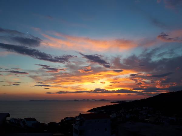 Picknick und nach einem Maifeiertag. Ein schöner und vor allem ruhiger Ort. Strände in einer Entfernung von 300 bis 400 Metern, gibt es auch Pubs, wo Sie leicht essen können, während Sie die Sonnenuntergänge bewundern. Ein toller Ort zum Entspannen mit Kindern und Tieren - wir waren hier mit zwei Katzen und es gibt kein Problem oder zusätzliche Gebühren. Es gibt alles, was wir brauchen - eine voll ausgestattete Küche, WLAN, TV, Grill, Klimaanlage und in dieser Zeit duftende Rosen auf dem Balkon. Um ein Lächeln und Tinkturen zu probieren. Der Gastgeber - sehr nett und hilfsbereit (wir hatten ein kleines Problem mit dem Auto, aber tata Mechaniker half uns sofort). Wir sind zum dritten Mal in Kroatien (vorher - Tucepi, Igrane -Seline) und der Preis, den wir für diese Momente der Ruhe und Erholung bezahlen, ist der niedrigste unter Berücksichtigung der Standards. Es gibt Orte der Ruhe und Stille und Aussicht, besonders Gospa von Loreta (am Tag und am Abend). sind in der Nähe der wichtigsten Geschäfte: konzum 10 min ,, tommy 12 und was der wichtigste Fischmarkt (lecker gegrillt) 20 min, also warum nicht mehr wollen Vielen Dank für Ihre Gastfreundschaft
