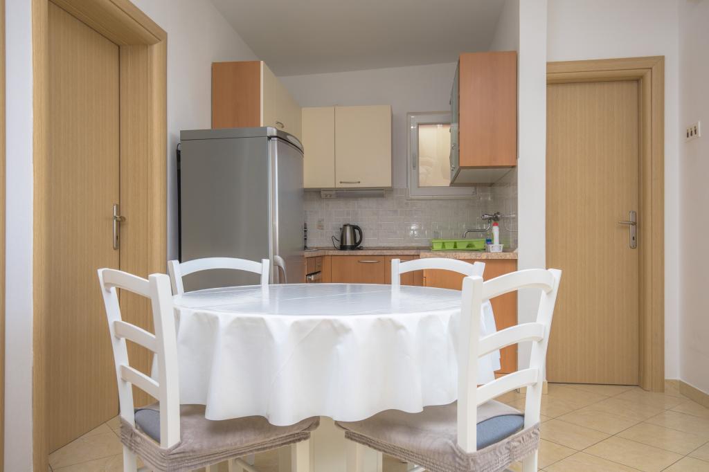 Wir waren für 2 Wochen im Apartment A4 (2 Erwachsene + 3 Kinder) und ich kann es nur empfehlen. Es ist sehr sauber, hat 2 komfortable Schlafzimmer, eine voll ausgestattete Küche, ein Wohnzimmer mit Sofa und Fernseher und einen Balkon, auf dem Sie Ihren Kaffee und den Meerblick genießen können. Es liegt in einer ruhigen Gegend, ein Strand (mit Bar) ist 2 Minuten entfernt und viele andere Strände sind zu Fuß erreichbar. Es gibt einige Märkte in einer Entfernung von ca. 5 Autominuten. Die Gastgeber sind sehr nett, immer hilfsbereit und produzieren erstklassiges Olivenöl
