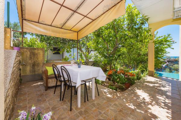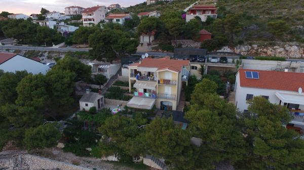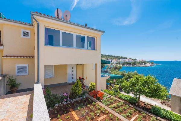 Ein Familienhaus mit drei Wohnungen in einer ruhigen Umgebung eines Pinienwaldes mit Blick auf das kristallklare Meer in 10 Metern Entfernung. Erste Reihe zum Meer. Allen Gästen stehen Parkplätze und die Nutzung eines Außengrills sowie ein Platz zum Ausruhen im Schatten der Pinien zur Verfügung. Jede Wohnung verfügt über einen eigenen Eingang, ist modern ausgestattet (Satellit, WLAN) und verfügt über eine Terrasse mit Blick auf das Meer. Entlang des Meeres erstreckt sich eine 5 km lange Promenade, die zum Laufen, Spazierengehen oder Radfahren geeignet ist, und im Hinterland des Dorfes gibt es Mountainbikewege. Wir befinden uns in der Nähe von zwei Nationalparks: NP Krka und NP Kornati sowie den Städten Šibenik, Trogir und Split, die unter dem Schutz der Unesco stehen. Wir bieten Ihnen einen angenehmen und erholsamen Urlaub in unseren Appartements und freuen uns auf Ihre Ankunft, die Familie Marinov Mirela und Branimir