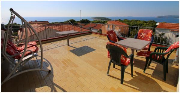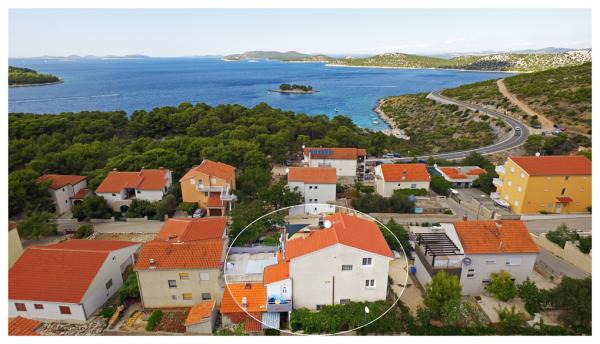 Komfortable Ferienwohnungen mit großen Terrassen im ruhigen Ort Bilo, 6 km vor Primošten, an der Küste. Etwa 150 m vom Meer und Strand entfernt. Wunderschöne und erhaltene Natur mit kristallklarem Meer.