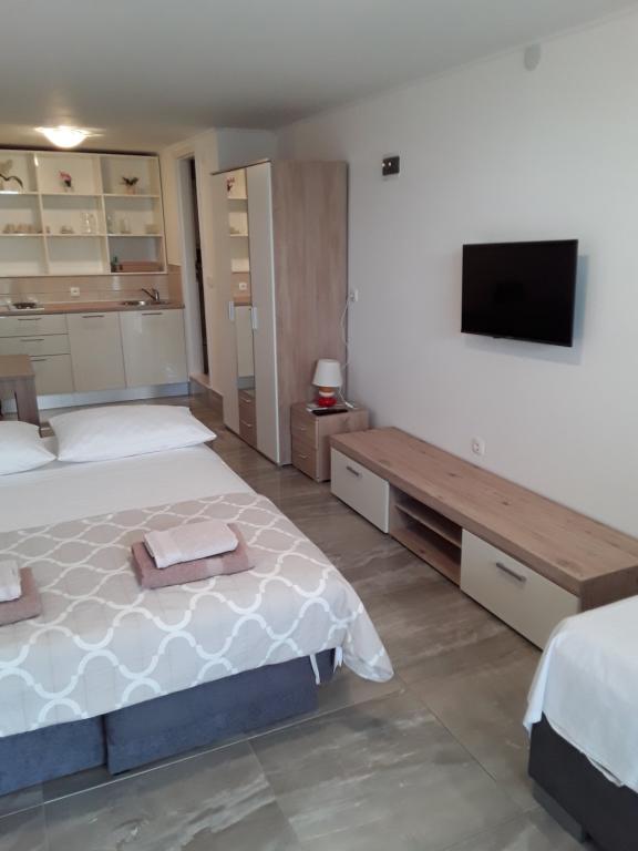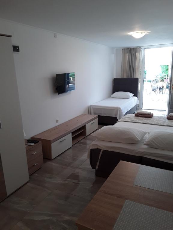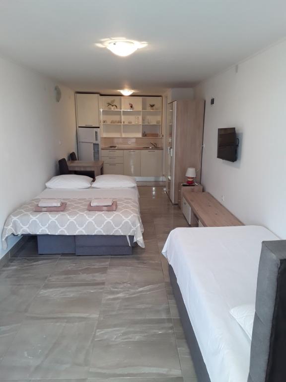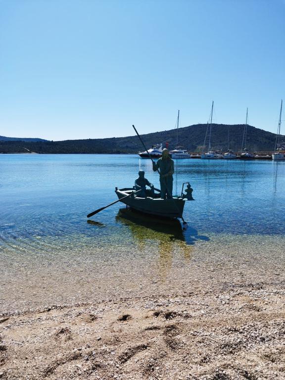 Voll ausgestattete Apartments in einer ruhigen Gegend in zweiter Reihe zum Meer, nur 100 Meter vom Strand entfernt. Die Wohnungen haben alles, um Ihren Urlaub zu genießen und sich wie zu Hause zu fühlen, Parkplätze befinden sich direkt vor dem Haus. Die Apartments sind 28 km von Sibenik und 35 km vom Nationalpark und 30 km vom Flughafen Split (Resnik) entfernt.