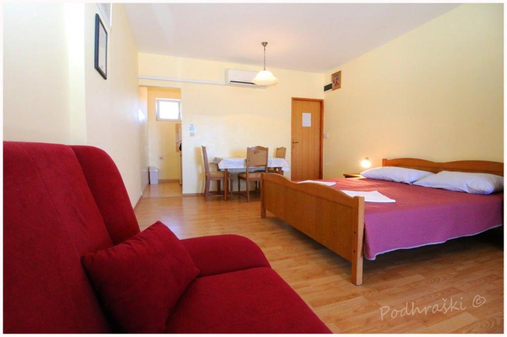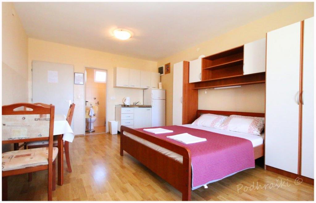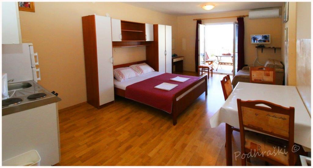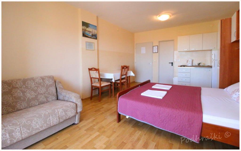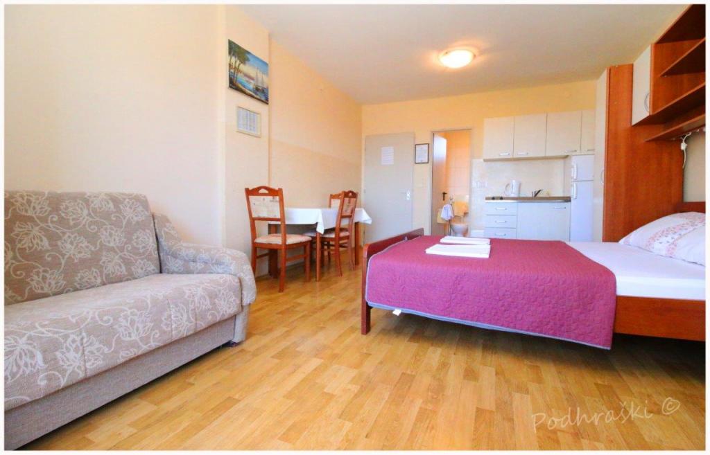 Rent 4 Studio-Apartments in Primosten in ruhiger Lage, 4min zu Fuß vom Hauptplatz, 2-3min zu Fuß vom Strand entfernt. Die Strände sind sandig mit Pinienwäldern. Kapazität für 2 Erwachsene und 2 Kinder weniger pro Wohnung Die Wohnungen sind neu, mit neuen Möbeln und sind im neuen Haus. Der Preis beinhaltet einen Parkplatz, Benutzung des Hofes, Klimaanlagen und Grills, sowie lokale Steuern. Jede Wohnung verfügt über Internet (WiFi), Kühlschrank, LCD-TV, Klimaanlage, ein Doppelbett, Sofa-Bett, Bad, Küche, Balkon, etc ...