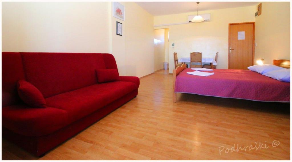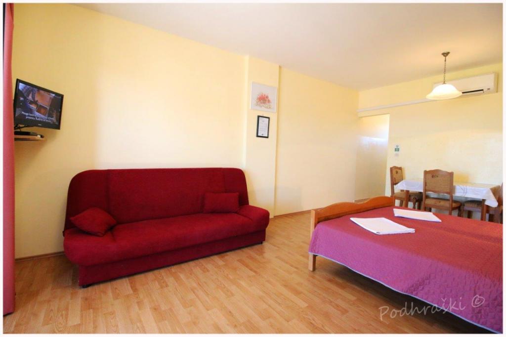 Kurtaxe ist im Preis inbegriffen.Rent 4 Studio-Apartments in Primosten in ruhiger Lage, 4min zu Fuß vom Hauptplatz, 2-3min zu Fuß vom Strand entfernt. Die Strände sind sandig mit Pinienwäldern. Kapazität für 2 Erwachsene und 2 Kinder pro Wohnung Die Wohnungen sind neu, mit neuen Möbeln und sind im neuen Haus. Der Preis beinhaltet überdachten Parkplatz, Nutzung des Hofes, Klimaanlagen und Grill, sowie lokale Steuern. Jede Wohnung verfügt über Internet (WiFi), Kühlschrank, LCD-TV, Klimaanlage, ein Doppelbett, Sofa-Bett, Bad, Küche, Balkon, etc ...