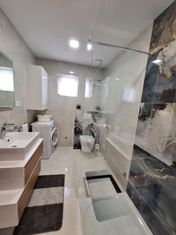 Wir haben uns in den Vera Apartments wirklich wie zu Hause gefühlt. Die Apartments sind modern eingerichtet und mit allem ausgestattet, was Sie brauchen, und absolut sauber. Der Balkon bietet einen unglaublichen Blick auf das Meer. Die Gastgeber in diesen Apartments sind die freundlichsten, die wir je hatten. Wir wurden mit fein zubereiteter hausgemachter Salami und Würstchen sowie verschiedenen Likören und Schnaps begrüßt. Später bereiteten sie für alle Gäste ein Abendessen zu und verwöhnten uns mit gegrilltem Fisch und Fleisch. Und über Franjas Juwelen, ganz zu schweigen davon, wie schön sie waren und davon gab es auch jede Menge. Wir würden diese Apartments jedem empfehlen, da sie die besten an der gesamten Adria sind. Wir werden auf jeden Fall nächsten Sommer wiederkommen.